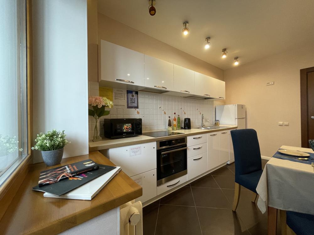 Уютная квартира в тихом месте рядом с лесом. Апартаменты обслуживаются профессиональной клининговой компанией; коростной Wi-Fi интернет и цифровое TV с SmartTV, комфортная двуспальная кровать, двуспальный раскладывающийся диван, белые махровые полотенца, белое постельное белье, ЖК телевизор с кабельным телевидением, SmartTV, душевой набор (гель для душа, шампунь, жидкое мыло, махровые полотенца), посуда для приема и приготовления пищи, столовые приборы, холодильник, микроволновая печь, варочная поверхность, духовой шкаф, электрический чайник, вытяжка, посуда, кухонные принадлежности, кондиционер, ванна, стиральная машина автомат, фен, утюг, гладильная доска.