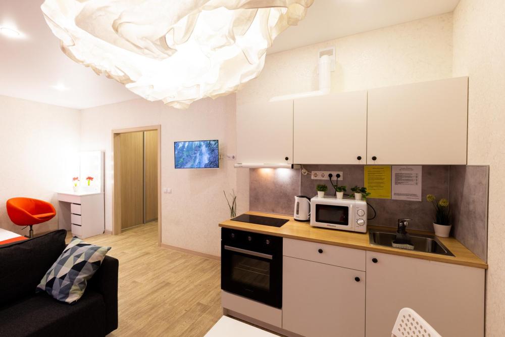Квартира расположена в элитном жилом комплексе «Квартал Энтузиастов». С окон 11-го этажа открывается красивый панорамный вид на город. Техническое оснащение квартиры: - широкая двуспальная кровать и двуспальный диван - Wi-Fi бесплатно - ЖК телевизор с кабельным телевидением - хлопковое белое постельное белье и полотенца - душевой набор - посуда для приема и приготовления пищи, столовые приборы - холодильник, микроволновая печь, варочная поверхность, духовой шкаф, чайник - стиральная машина автомат, фен, утюг, гладильная доска, сушилка. В доме круглосуточный консьерж. Закрытый охраняемый двор. Удобный въезд на парковку, оборудованную камерами видеонаблюдения. В шаговой доступности самый крупный торговый центр города «Планета», включающий в себя Аквапарк и кинотеатр.