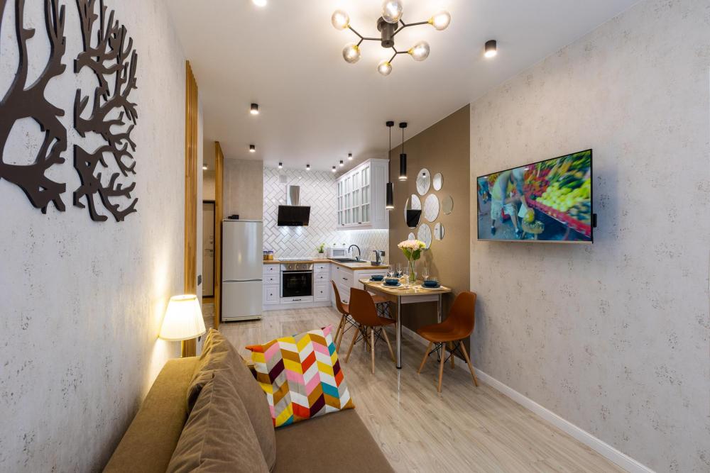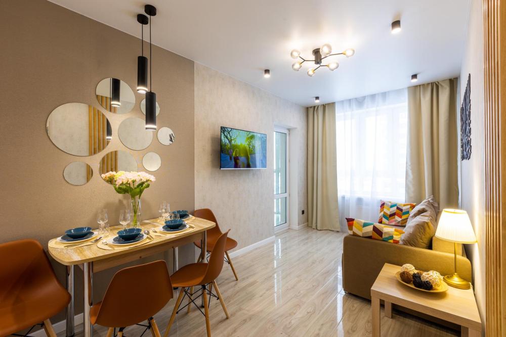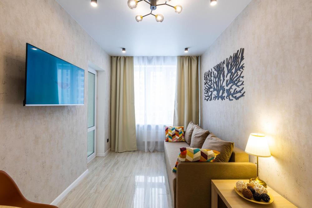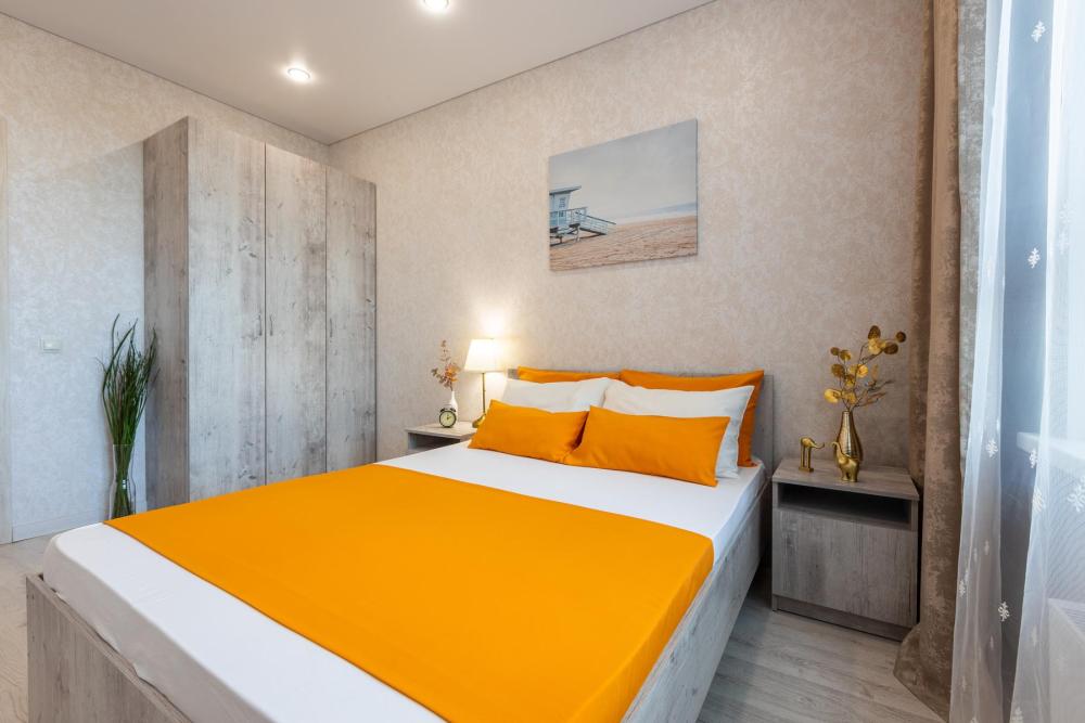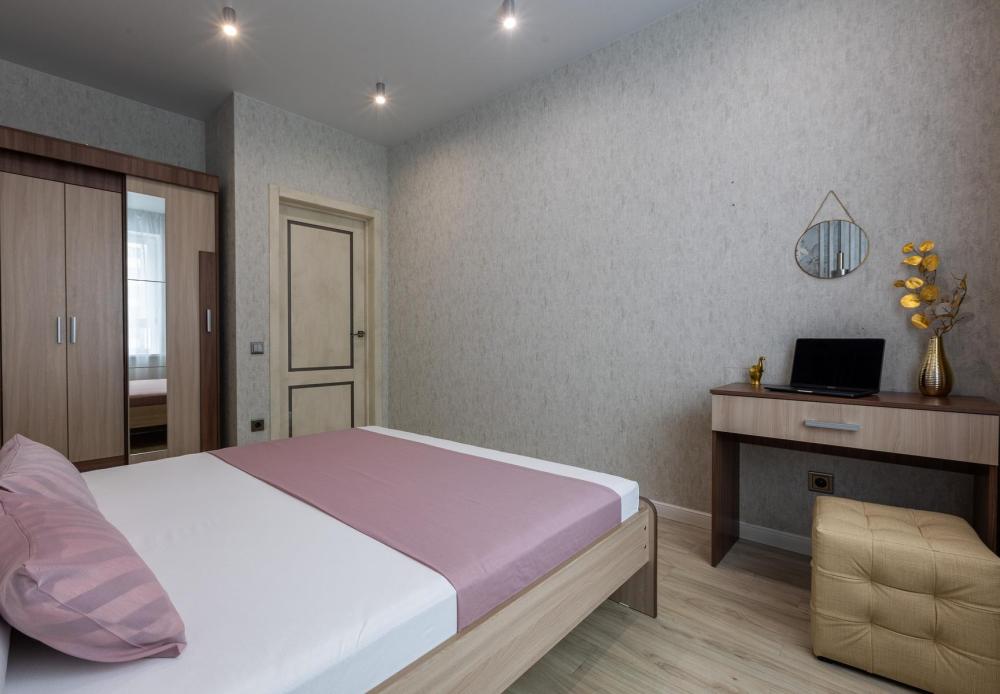 Квартира с дизайнерским ремонтом в элитном жилом комплексе «Планета», на 16 этаже 25 этажного дома. Техническое оснащение квартиры: - широкая двуспальная кровать и двуспальный диван - Wi-Fi бесплатно - ЖК телевизор с кабельным телевидением - хлопковое белое постельное белье и полотенца - душевой набор - посуда для приема и приготовления пищи, столовые приборы - холодильник, микроволновая печь, варочная поверхность, духовой шкаф, чайник, вытяжка - стиральная машина автомат, фен, утюг, гладильная доска, сушилка. Круглосуточный консьерж. Дизайнерский холл. Закрытый охраняемый двор, оборудованный камерами видеонаблюдения, ночным освещением. Игровые площадки для детей и подростков. Зеленый сквер с велодорожками и зонами отдыха. Окна с видом на тихий уютный двор и ТРК Планета.