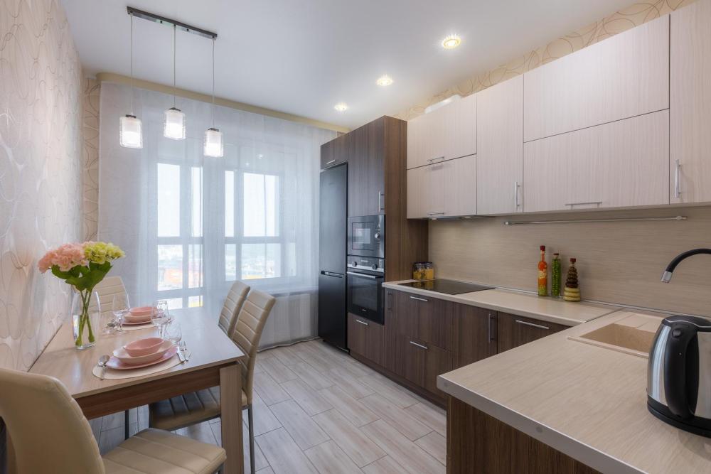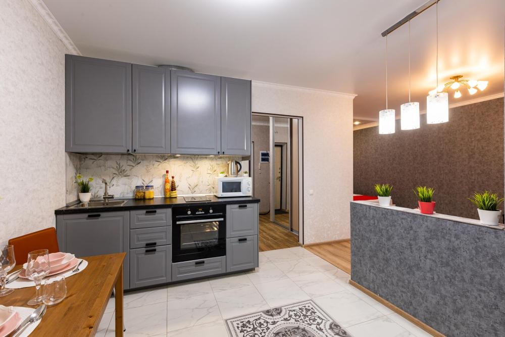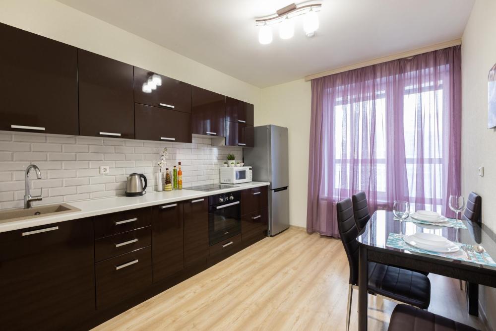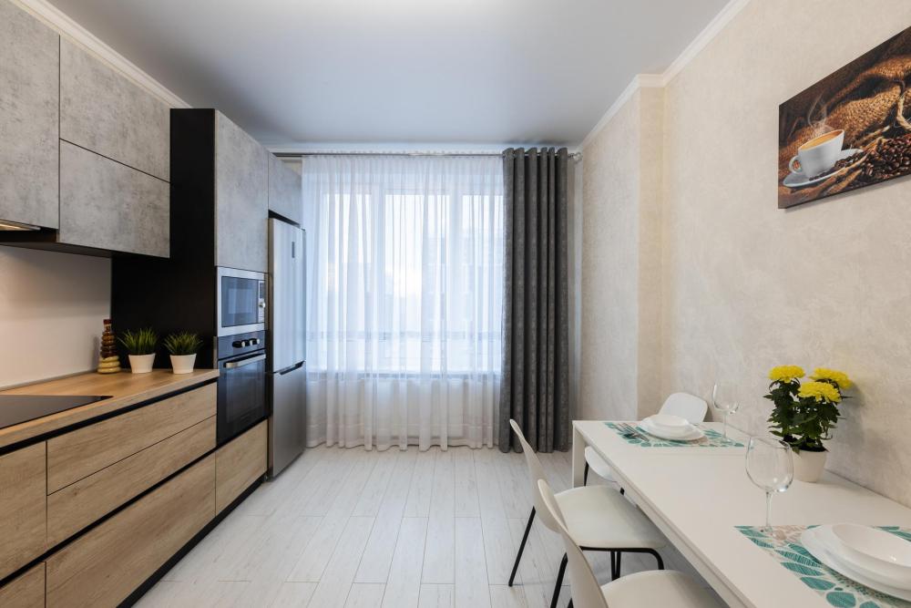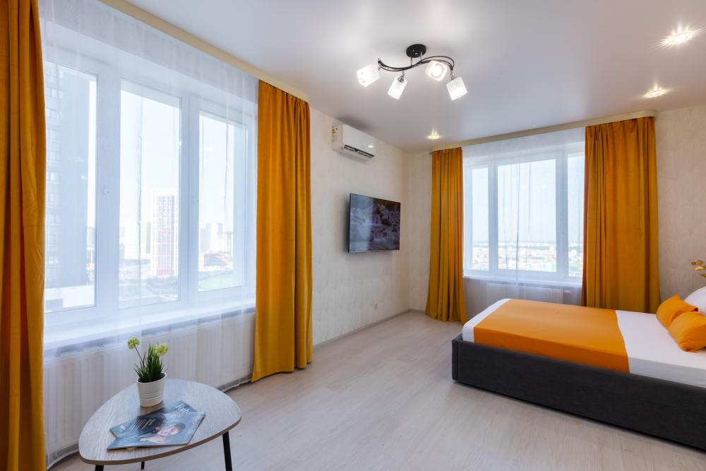Квартира в элитном жилом комплексе «Квартал Энтузиастов». С окон 18-го этажа открывается красивый панорамный вид на город и реку Уфа. Техническое оснащение квартиры: - широкая двуспальная кровать и двуспальный диван - Wi-Fi бесплатно - ЖК телевизор с кабельным телевидением - хлопковое белое постельное белье и полотенца - душевой набор - посуда для приема и приготовления пищи, столовые приборы - холодильник, микроволновая печь, варочная поверхность, духовой шкаф, чайник, вытяжка, посудомоечная машина - водонагреватель, стиральная машина автомат, фен, утюг, гладильная доска. В доме круглосуточный консьерж. Закрытый охраняемый двор, оборудованный камерами видеонаблюдения, ночным освещением и фонтаном, работающим в летнее время. Игровые площадки для детей и подростков. Зеленый сквер с велодорожками и зонами отдыха.