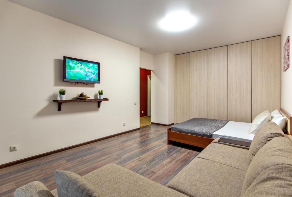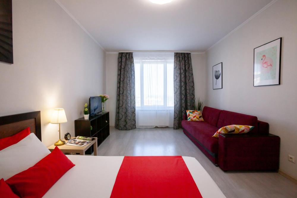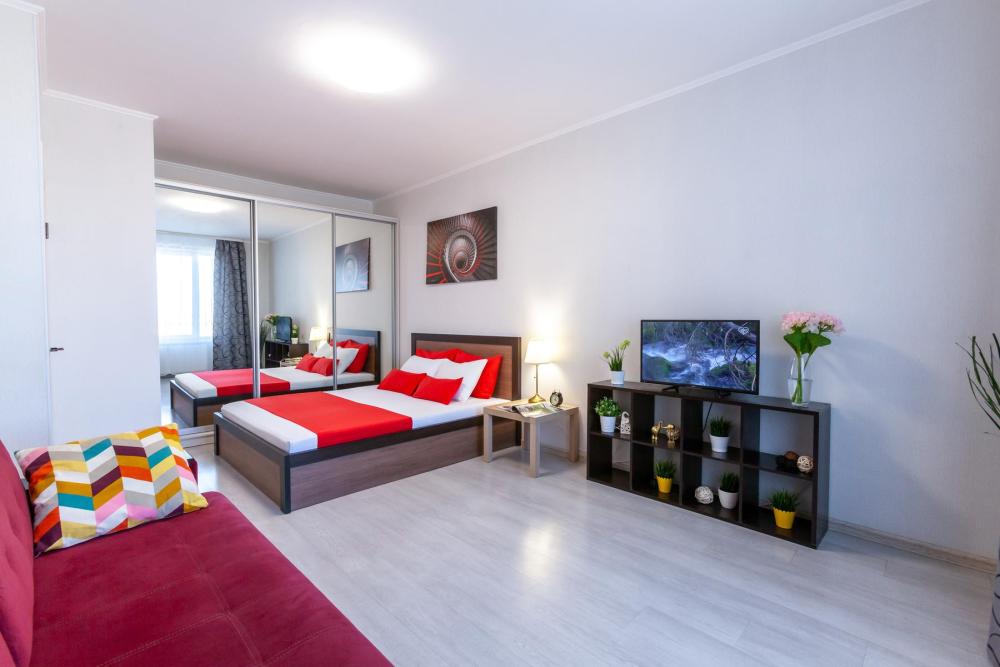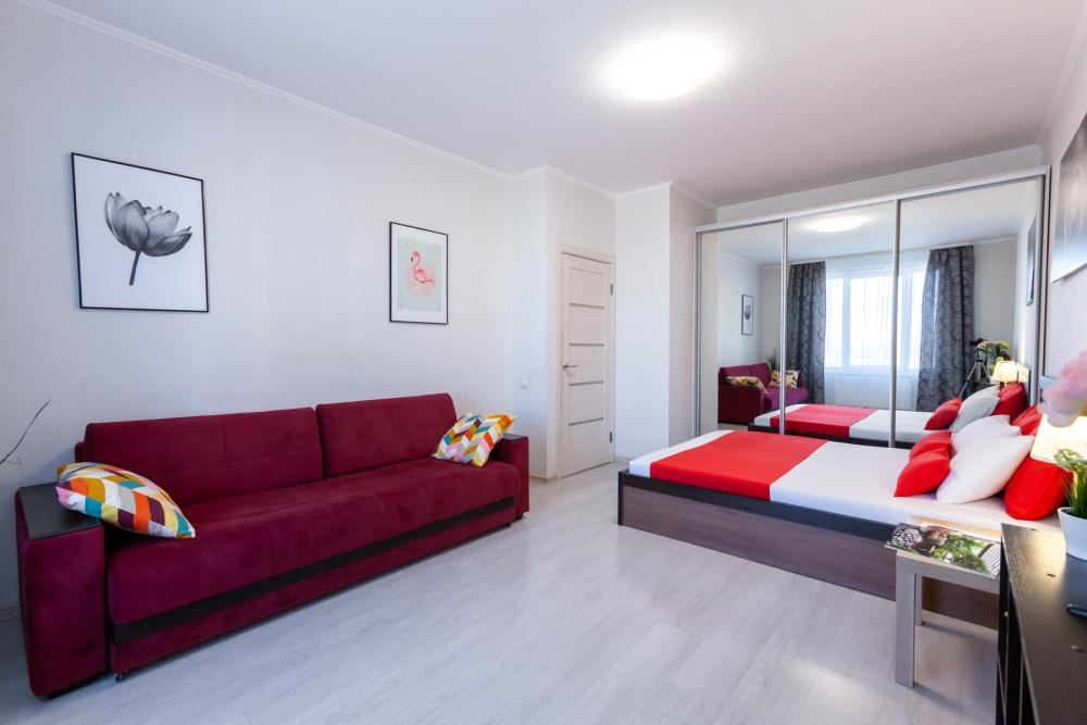 Квартира в элитном жилом комплексе «Квартал Энтузиастов». С окон 13-го этажа открывается красивый панорамный вид на город и реку Уфа. Техническое оснащение квартиры: - широкая двуспальная кровать и двуспальный диван - Wi-Fi бесплатно - 2 ЖК телевизора с кабельным телевидением в спальне и на кухне - кондиционер - хлопковое белое постельное белье и полотенца - душевой набор - посуда для приема и приготовления пищи, столовые приборы - холодильник, микроволновая печь, электроплита с духовым шкафом, чайник - водонагреватель, стиральная машина автомат, фен, утюг, гладильная доска, сушилка. В доме круглосуточный консьерж. Закрытый охраняемый двор, оборудованный камерами видеонаблюдения, ночным освещением и фонтаном, работающим в летнее время. Игровые площадки для детей и подростков. Зеленый сквер с велодорожками и зонами отдыха.