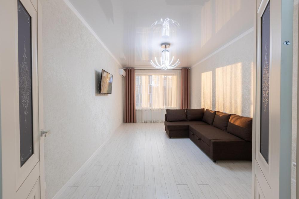 Квартира расположена в элитном жилом комплексе «Квартал Энтузиастов». С окон 8-го этажа открывается красивый панорамный вид на город Уфа. Техническое оснащение квартиры: - широкая двуспальная кровать и двуспальный диван - Wi-Fi бесплатно - СМАРТ телевизор с кабельным телевидением в зале - ЖК телевизор с кабельным телевидением в спальне - хлопковое белое постельное белье и полотенца - душевой набор - посуда для приема и приготовления пищи, столовые приборы - холодильник, микроволновая печь, варочная поверхность, духовой шкаф, чайник, вытяжка - стиральная машина автомат, фен, утюг, гладильная доска. В доме круглосуточный консьерж. Закрытый охраняемый двор, оборудованный камерами видеонаблюдения, ночным освещением и фонтаном, работающим в летнее время. Игровые площадки для детей и подростков. Зеленый сквер с велодорожками и зонами отдыха.