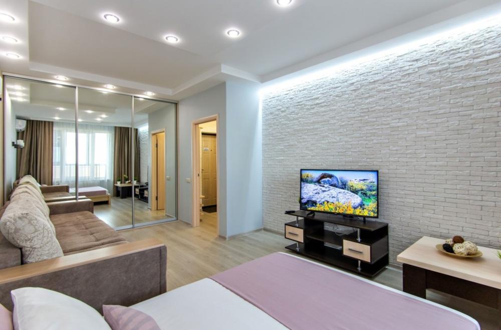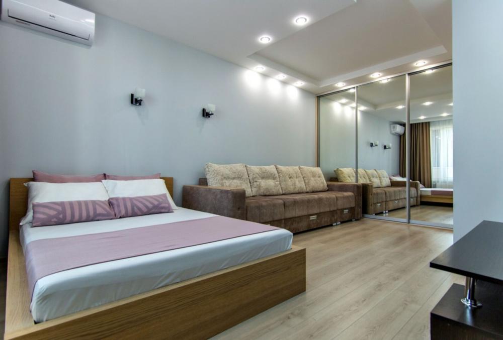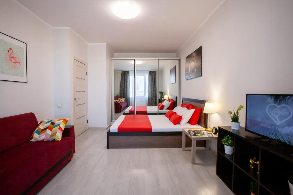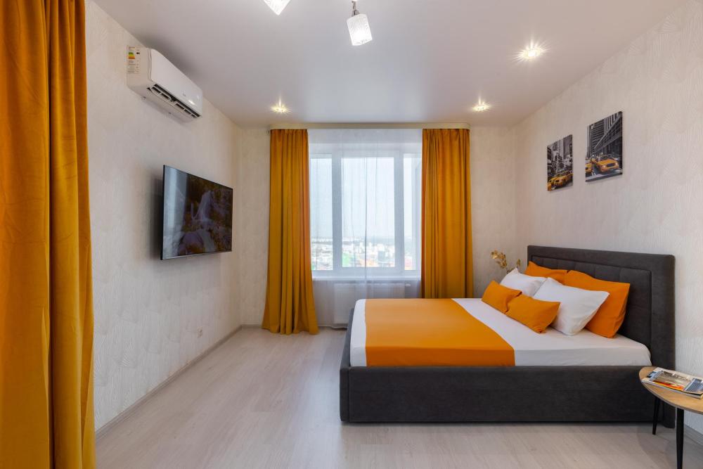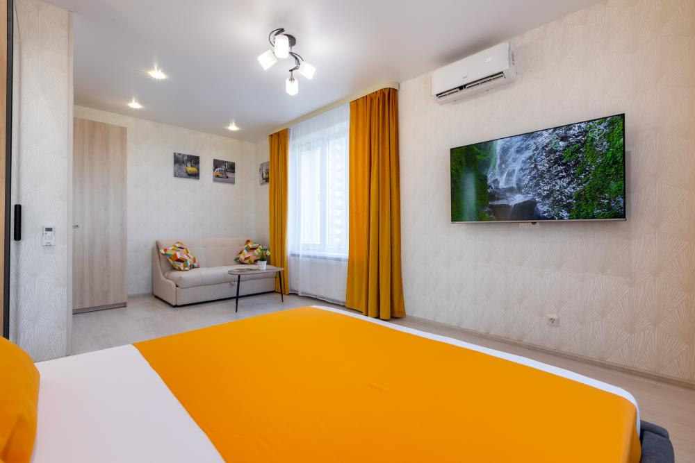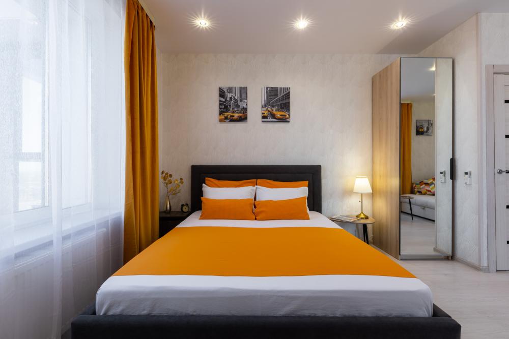 Квартира в элитном жилом комплексе «Квартал Энтузиастов». С окон 8-го этажа открывается красивый панорамный вид на город и реку Уфа. Техническое оснащение квартиры: - широкая двуспальная кровать и двуспальный диван - Wi-Fi бесплатно - ЖК телевизор с кабельным телевидением - кондиционер - хлопковое белое постельное белье и полотенца - душевой набор - посуда для приема и приготовления пищи, столовые приборы - холодильник, микроволновая печь, электроплита, чайник, вытяжка - водонагреватель, стиральная машина автомат, фен, утюг, гладильная доска, сушилка. В доме круглосуточный консьерж. Закрытый охраняемый двор, оборудованный камерами видеонаблюдения, ночным освещением и фонтаном, работающим в летнее время. Игровые площадки для детей и подростков. Зеленый сквер с велодорожками и зонами отдыха.