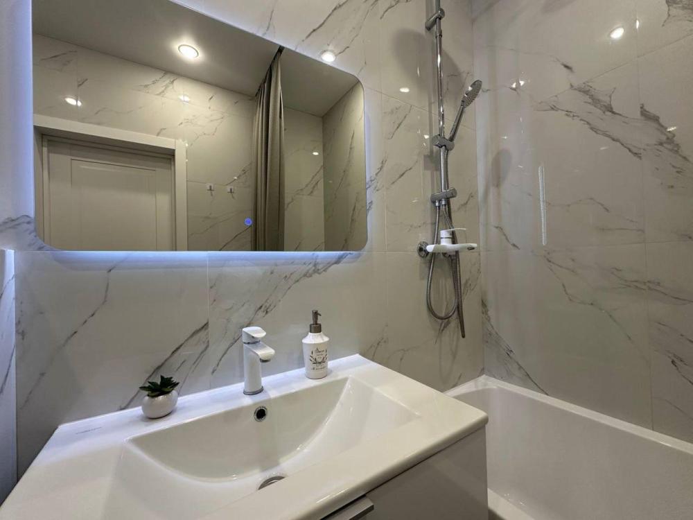 ⚙️Техническое оснащение квартиры: - широкая двуспальная кровать. - Wi-Fi бесплатно - ЖК телевизор с кабельным телевидением и SMART TV - хлопковое белое постельное белье и полотенца - душевой набор - посуда для приема и приготовления пищи, столовые приборы - холодильник, микроволновая печь, варочная поверхность, чайник, вытяжка - водонагреватель, стиральная машина автомат, фен, утюг, гладильная доска, сушилка