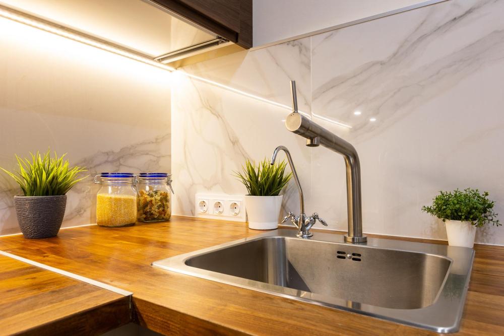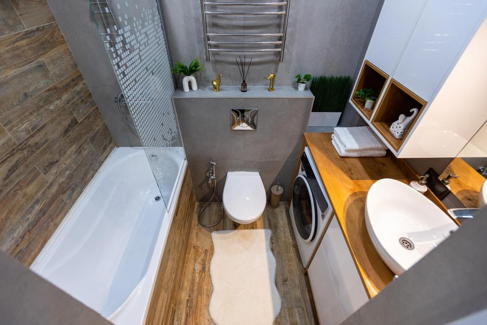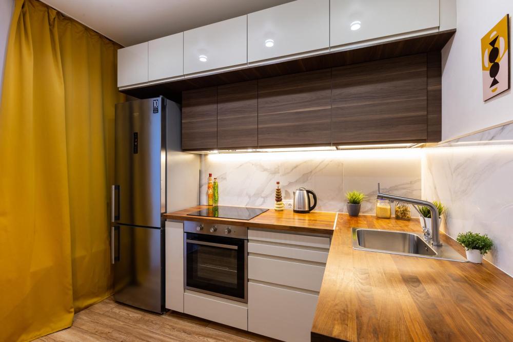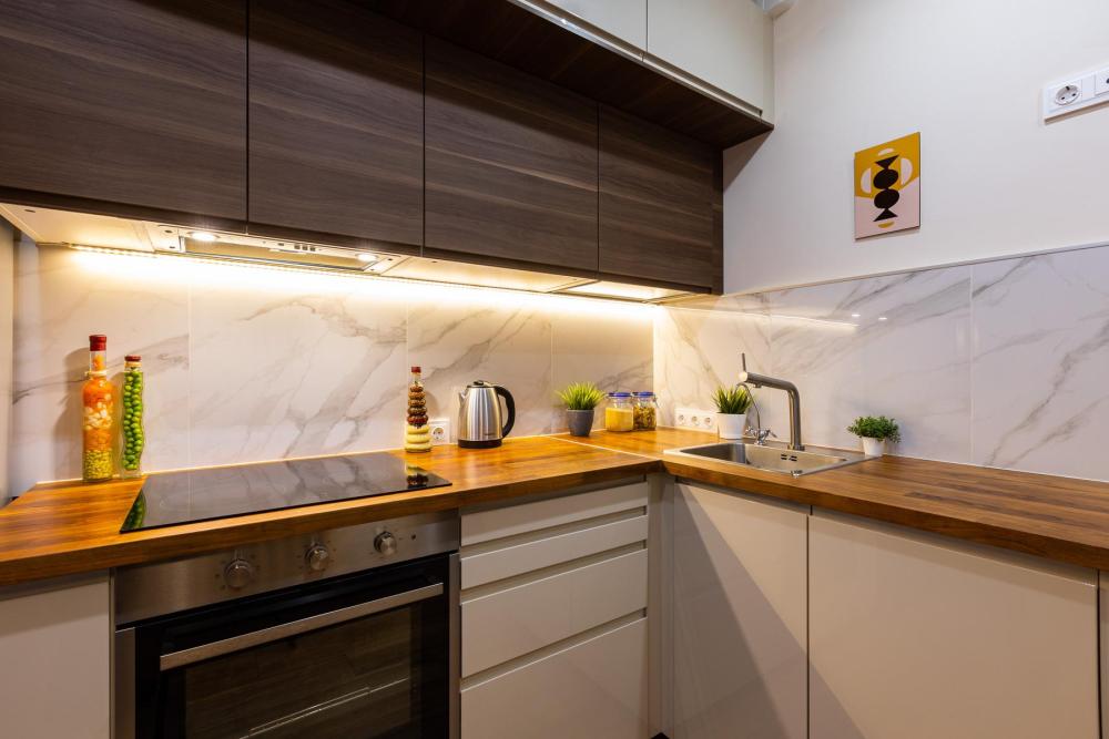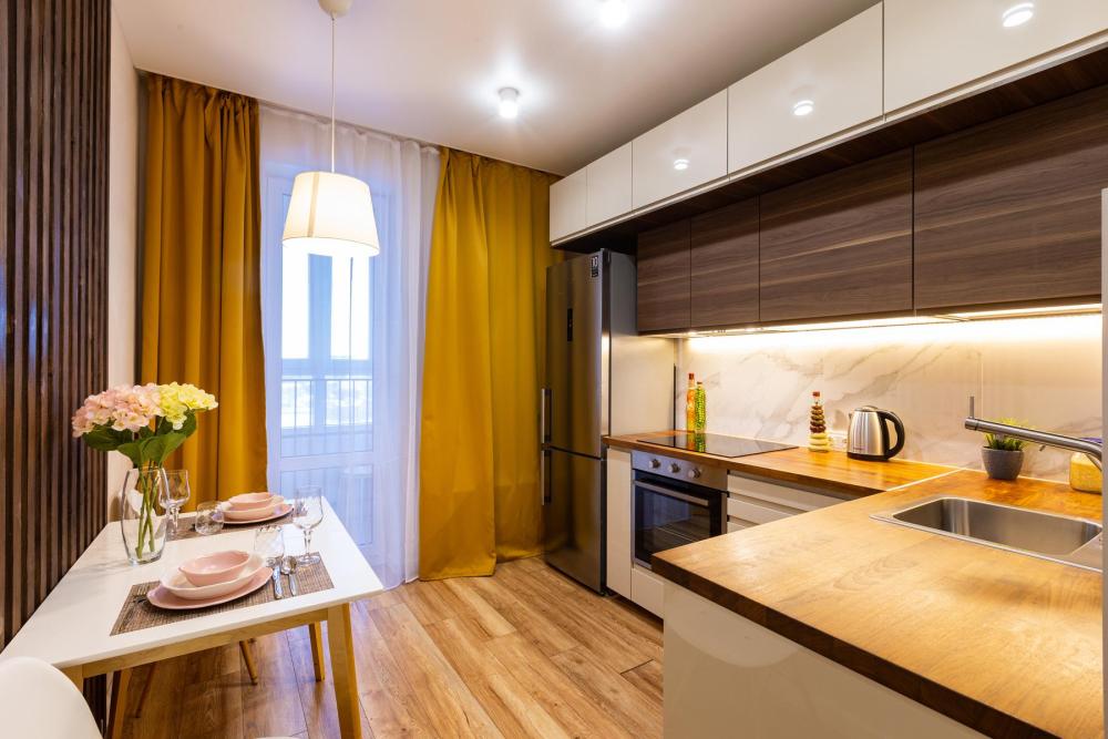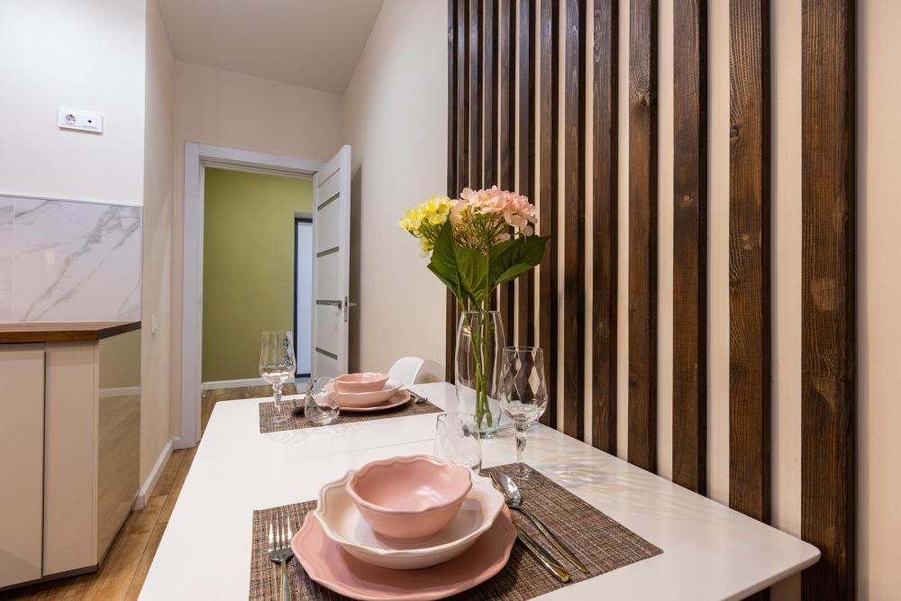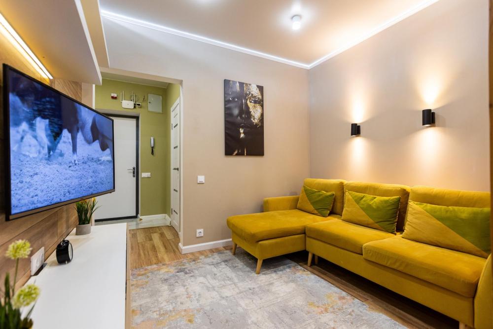 Техническое оснащение квартиры: широкая двуспальная кровать с ортопедическим матрасом, Wi-Fi бесплатно, телевизор с кабельным телевидением. Хлопковое белое постельное белье и полотенца, душевой набор, посуда для приема и приготовления пищи, столовые приборы. Холодильник, микроволновая печь, варочная поверхность, чайник, водонагреватель, стиральная машина автомат, фен, утюг, гладильная доска