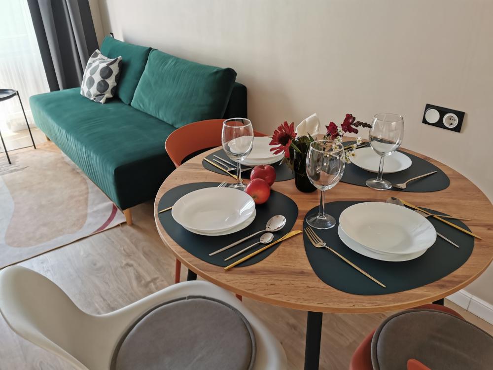 Отдельная спальня с дверью дает возможность отгородиться от света и шума и хорошо отдохнуть. Поэтому квартира подходит для семей с детьми или пар, путешествующих вместе. Максимум 4 человека (включая детей). В квартире есть все необходимое для комфортного проживания: посуда для приготовления и приема пищи, холодильник, СВЧ, электрочайник, стиральная машина, фен, утюг и гладильная доска, сушилка для белья. Для прекрасного сна двуспальная кровать шириной 160см, шторы black-out. Удобный раскладной диван шириной 140см, WiFI, смарт ТВ с Youtube и IVI, свежее постельное белье, чистые полотенца, принадлежности для ванной( шампунь, гель для душа, жидкое мыло, туалетная бумага), фильтр питьевой воды.