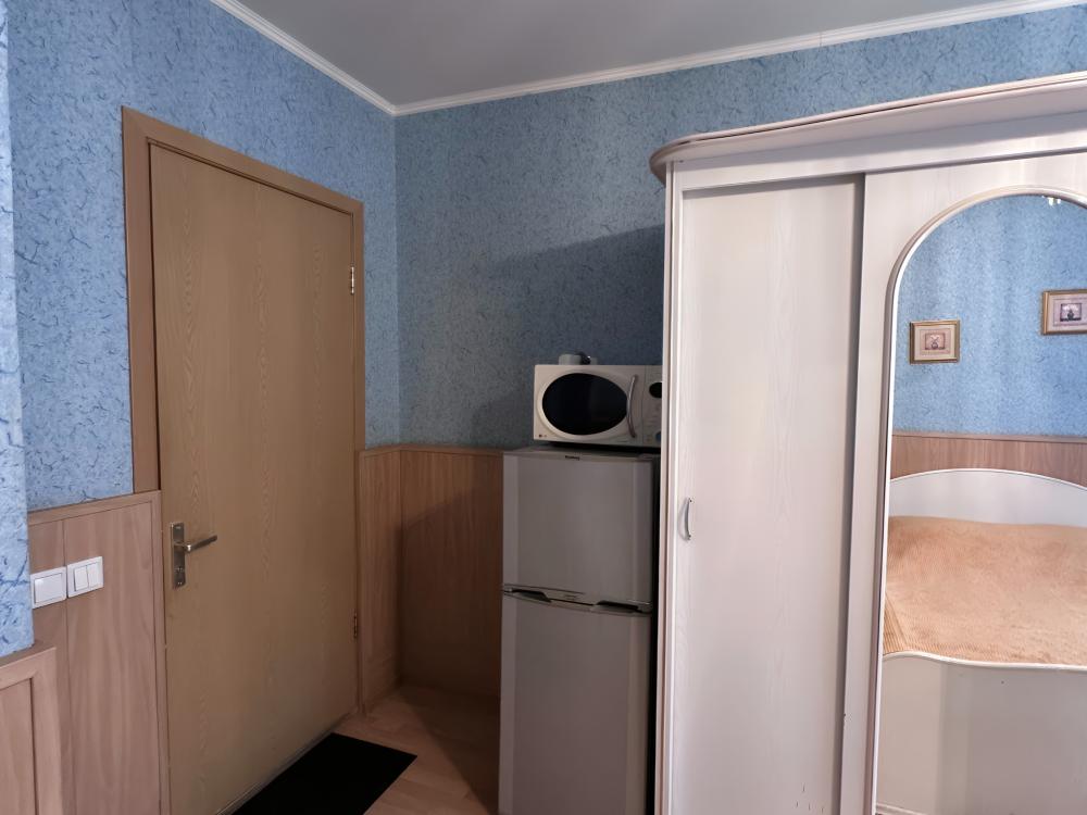 Комната комфорт двухместная общей площадью 16 кв.м. с двухспальной кроватью. Оснащение: Wi-Fi, санузел с душем, чайник, чай, вода в кулере, СВЧ печь, холодильник, ТВ, комплект постельного белья и полотенец, бытовая химия, жидкое мыло, стиральный порошок.