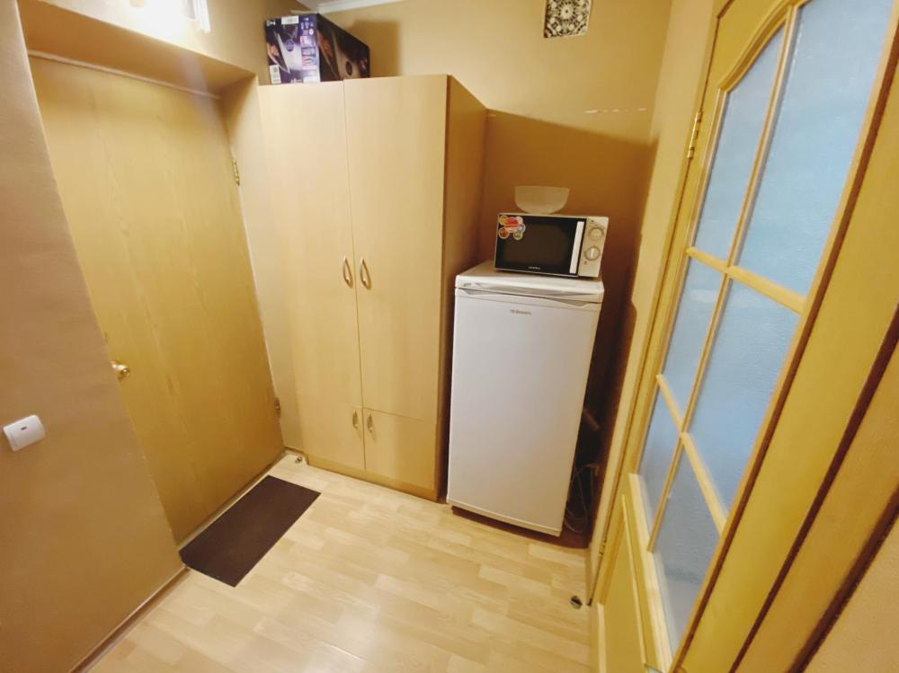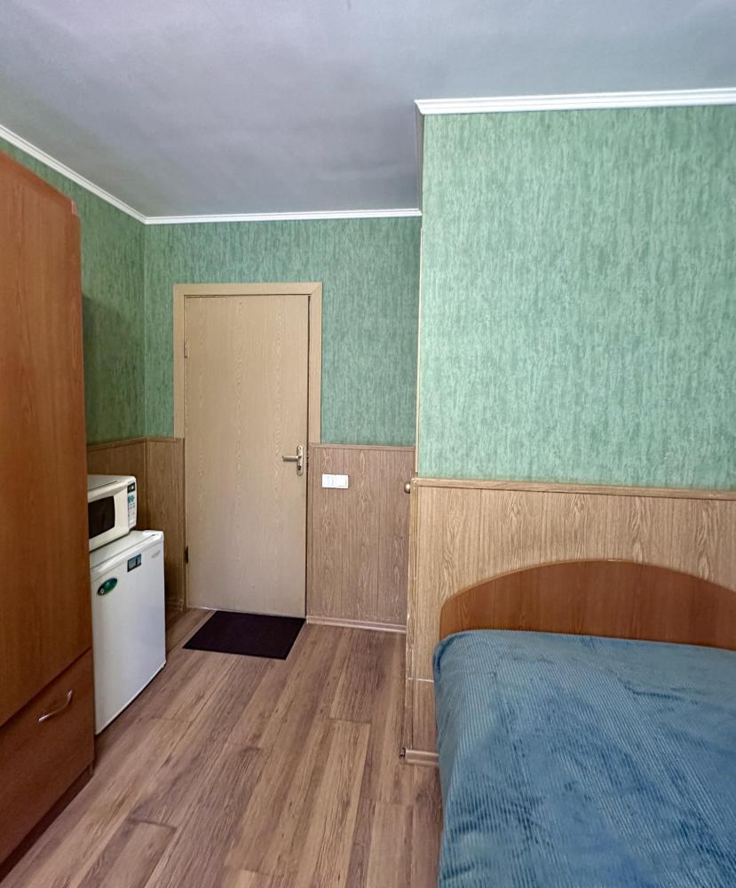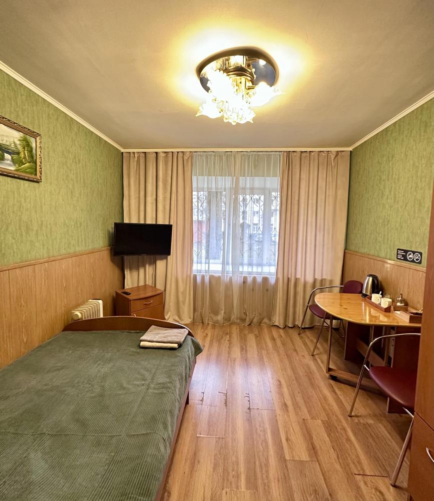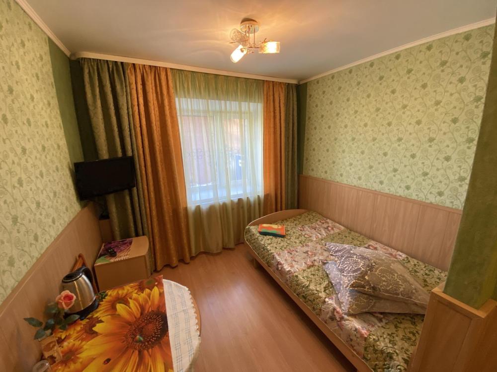 Одноместная комната стандарт общей площадью 14 кв.м. с кроватью шириной 1.2 метра. Оснащение: Wi-Fi, санузел с душем, чайник, чай, вода в кулере, СВЧ печь, холодильник, ТВ, комплект постельного белья и полотенец, бытовая химия, жидкое мыло, стиральный порошок.