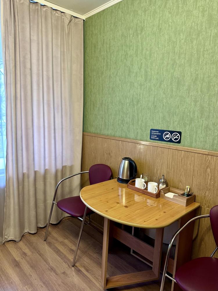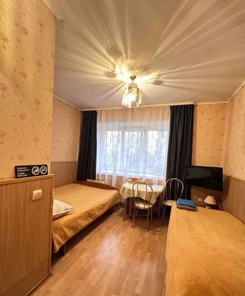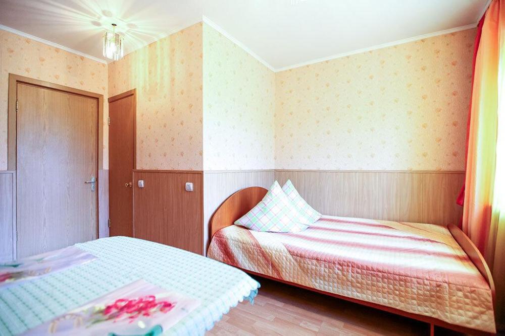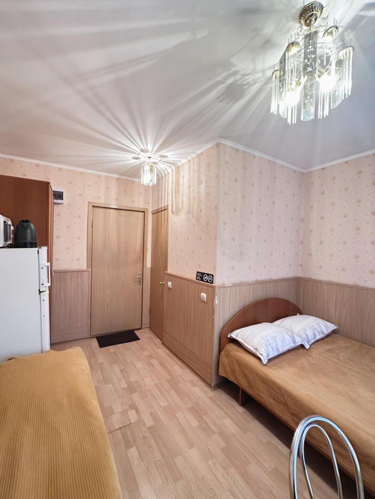 Двухместная комната стандарт общей площадью 18 кв.м. с двумя односпальными кроватями. Оснащение: Wi-Fi, санузел с душем, чайник, чай, вода в кулере, СВЧ печь, холодильник, ТВ, комплект постельного белья и полотенец, бытовая химия, жидкое мыло, стиральный порошок.