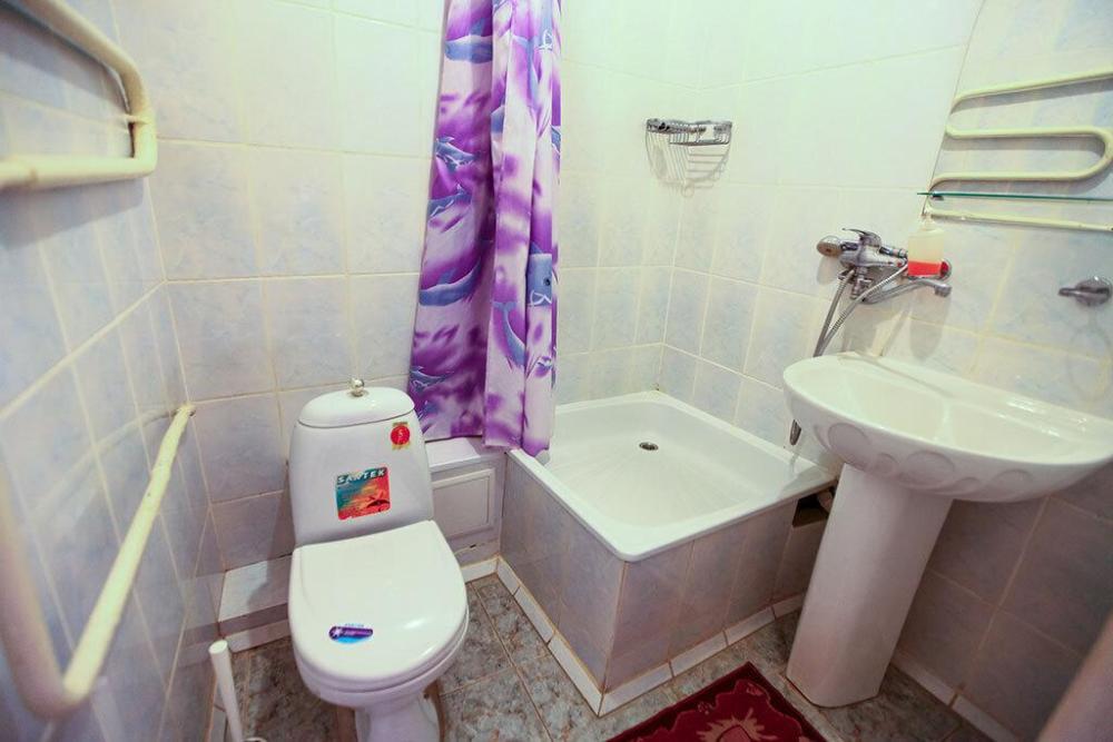 Двухместный Семейный с Душем, общей площадью 14 кв.м. с двухспальной кроватью шириной 1.6 метра. Оснащение: Wi-Fi, санузел с душем, чайник, чай, вода в кулере, СВЧ печь, холодильник, ТВ, комплект постельного белья и полотенец, бытовая химия, жидкое мыло, стиральный порошок.