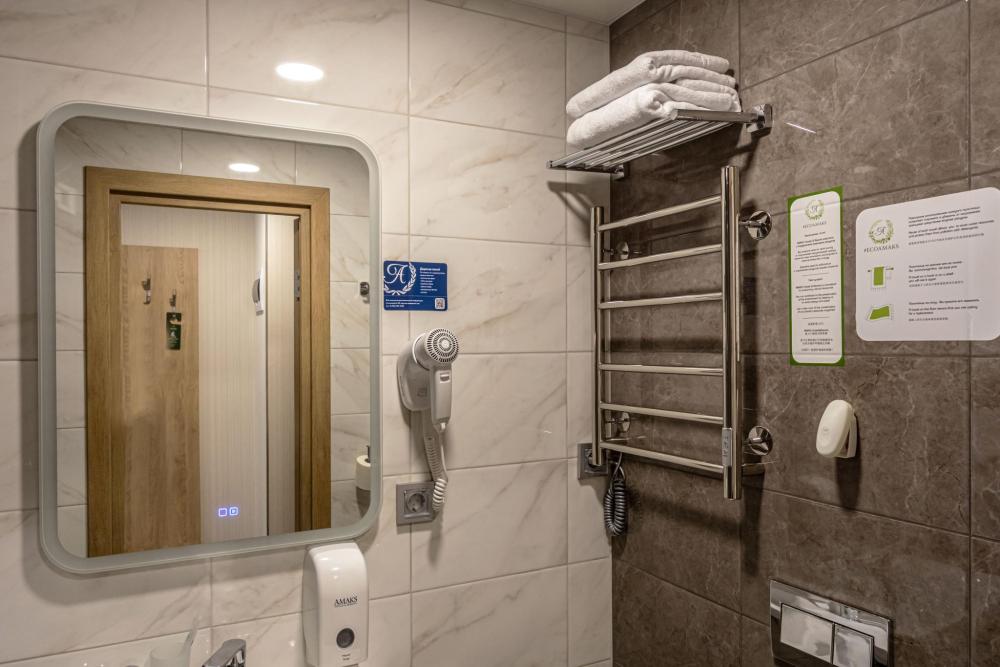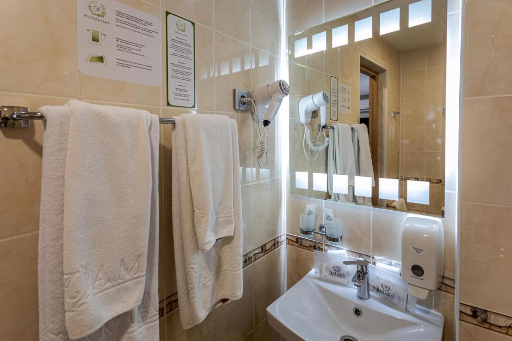 Однокомнатный номер, S = 30 кв.м. В номере: Одна двуспальная кровать (шир. 180 см.), телевизор ЖК, мини-бар, телефон, доступ WiFi. Ванная комната: санузел, душевая кабина, туалетные принадлежности, зубной набор, бритвенный набор, тапочки, халат, фен.
