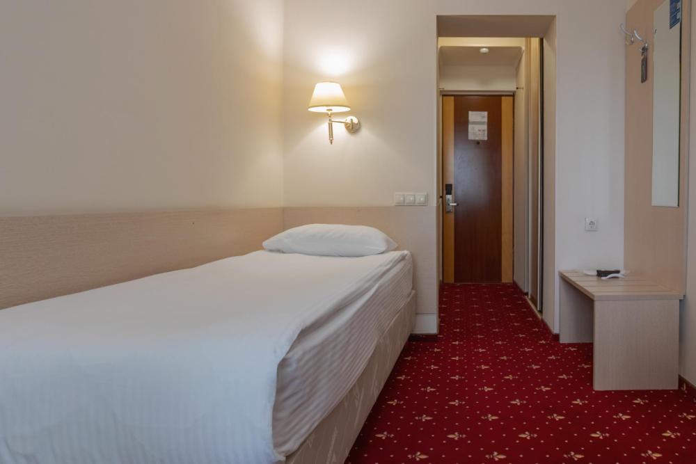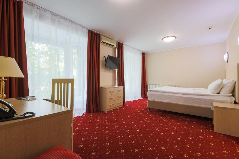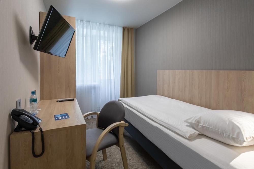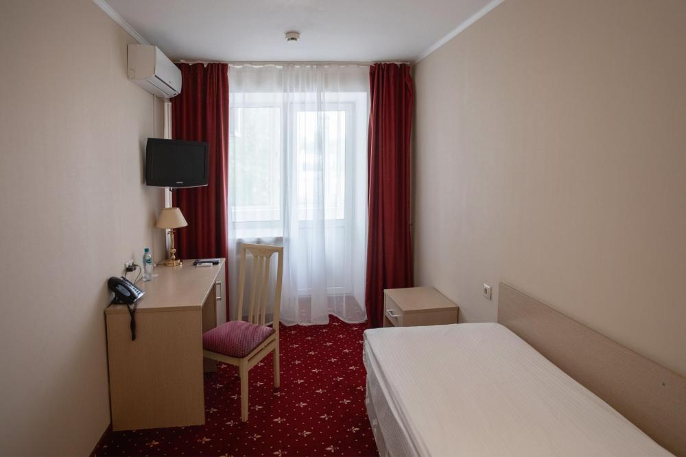 Площадь номера: 18 кв.м., размещение - 1 чел. Прихожая: шкаф, багажная полка. Комната: односпальная кровать, тумбочки, стол, стул, телевизор, холодильник, телефон. Ванная комната: душевая кабина, туалетные принадлежности, комплект полотенец.