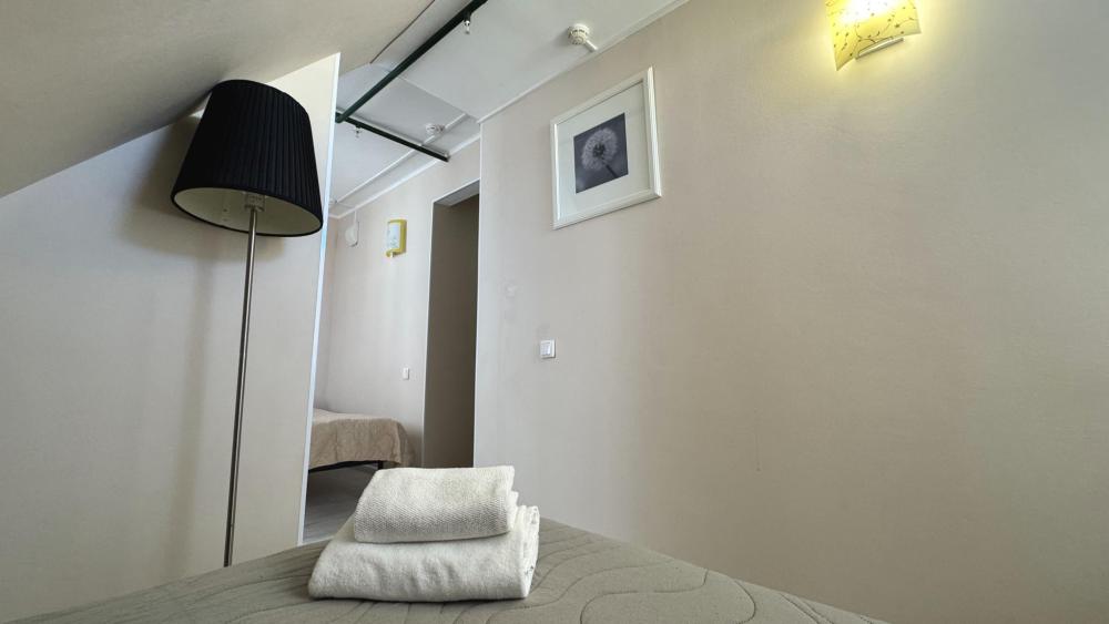 Номер оборудован всем необходимым для для комфортного проживания: полутораспальная кровать, прикроватная тумбочка, сейф, стул, стол, телевизор, телефон, холодильник, чайник, санузел, душевая кабина. Бесплатный интернет Wi-Fi.