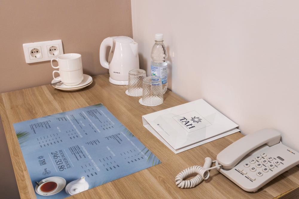 Комфортный Стандартный номер оснащен всем необходимым для комфортного проживания двух человек: две односпальные кровати или одна двуспальная кровать, рабочая зона, санузел, бесплатный Wi-Fi. Оснащение номера: две односпальные кровати 90*200 см или одна двуспальная кровать 200*200, шкаф, холодильник, чайник с чайными парами, рабочая зона, телевизор, ванная комната с душем, санузел, набор санитарно-гигиенических принадлежностей.