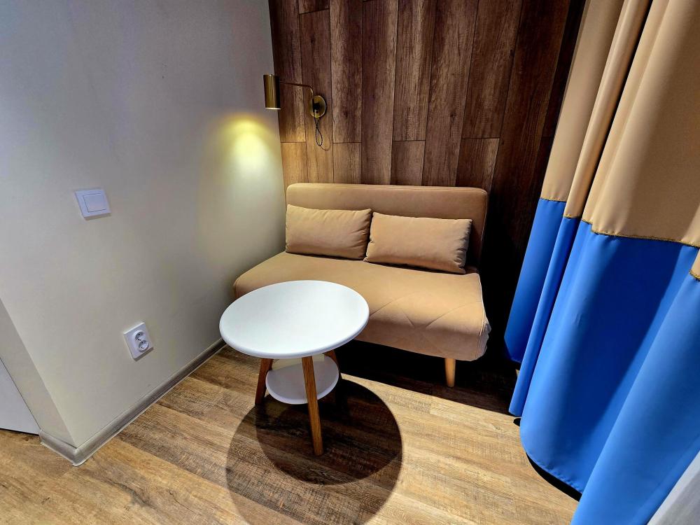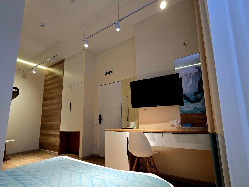 Однокомнатный номер с большой кроватью и креслом-кроватью рассчитан на размещение не более трех гостей. Номер укомплектован всем необходимым, набор постельного белья, полотенец, wi-fi.