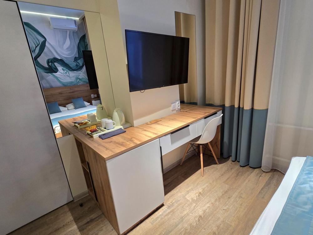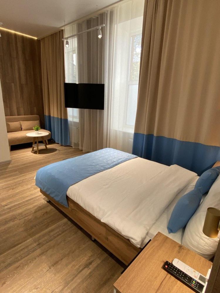 Отличный номер с большой кроватью, диваном-кроватью, тремя окнами и огромным зеркалом. Номер укомплектован всем необходимым, набор постельного белья, полотенец, wi-fi.
