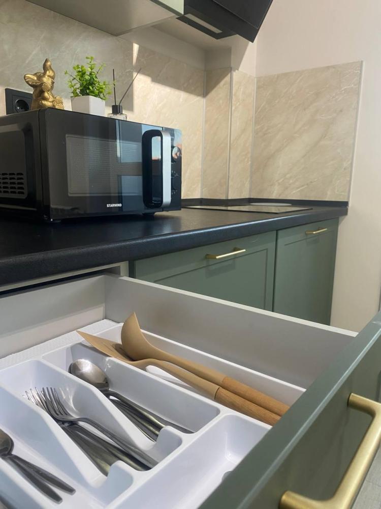 B квapтиpe ecть все необходимое для комфортного проживания: двуспальная кровать, диван на 2 спальных места, телевизор, wi fi, кондиционер, постельное белье, полотенца, гигиенические средства, оборудованная кухня, холодильник, электрический чайник, посуда для приготовления и сервировки, санузел, фен, стиральная машина, утюг, гладильная доска.