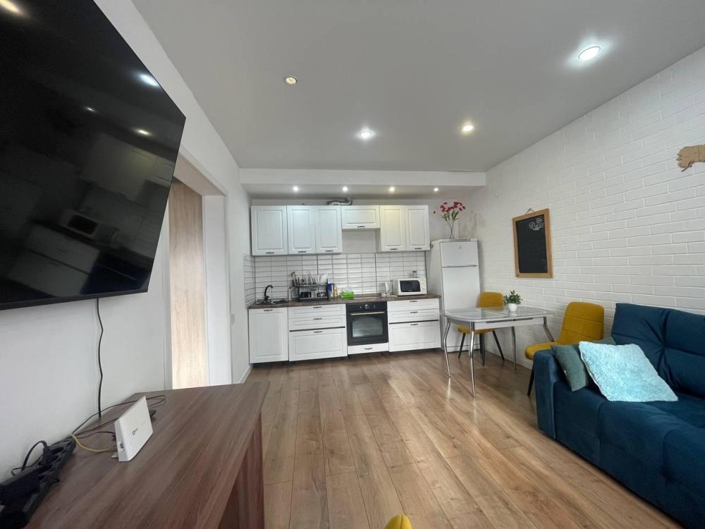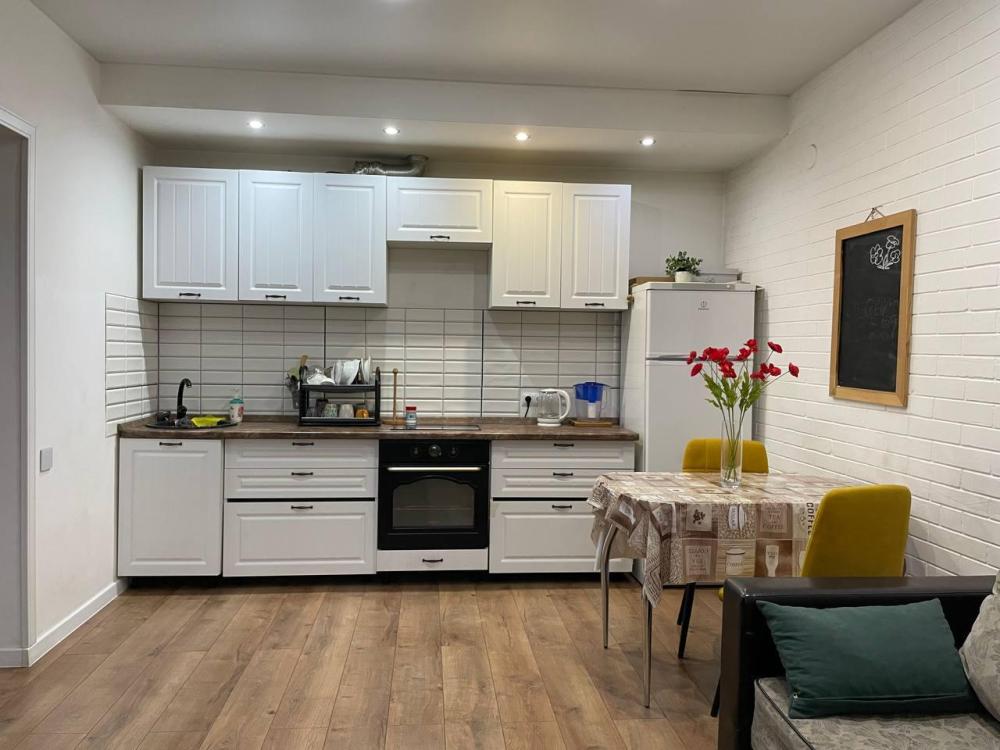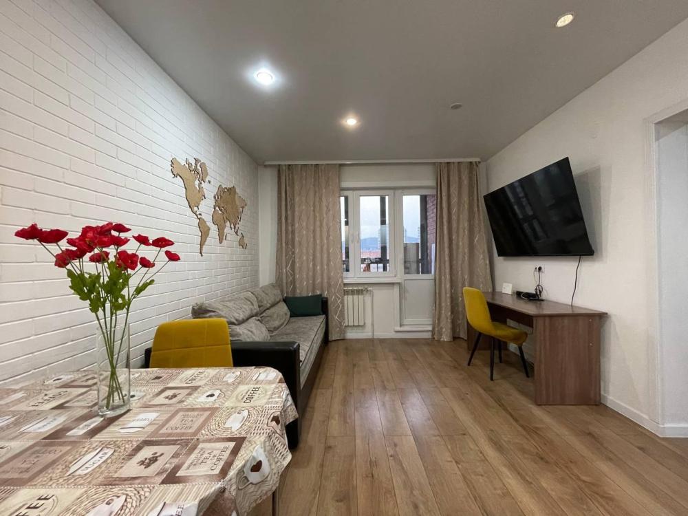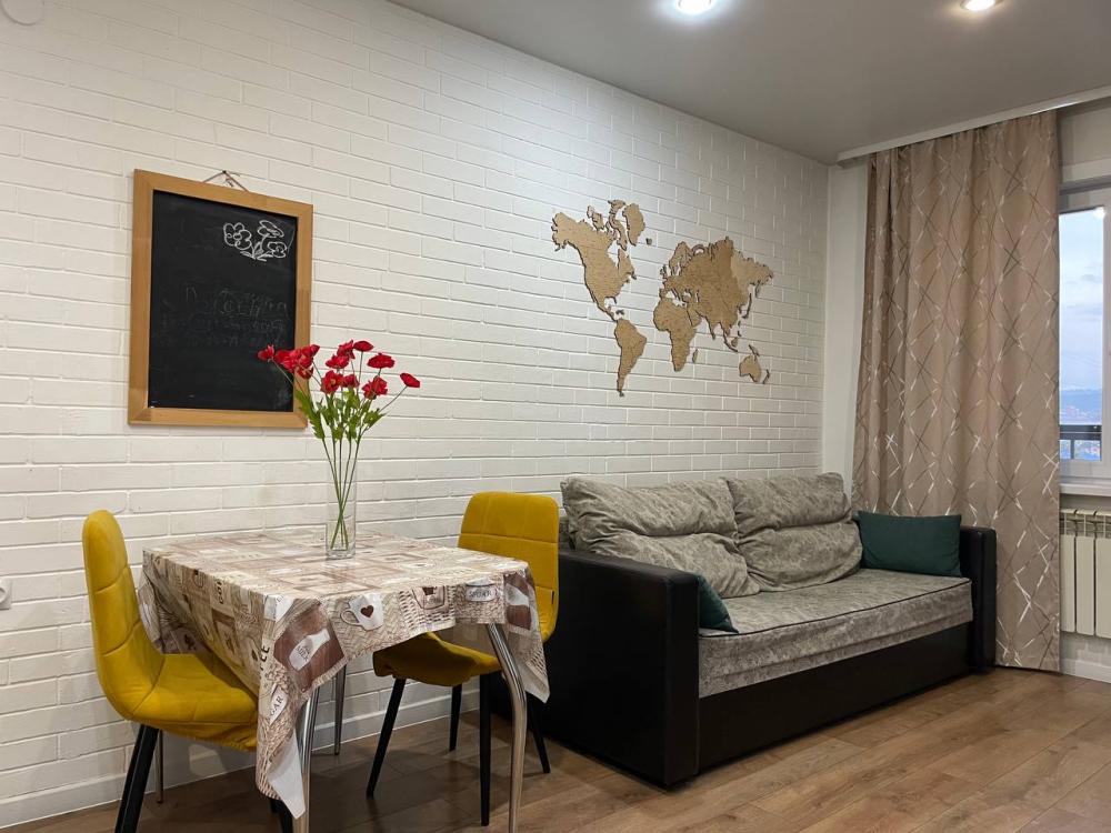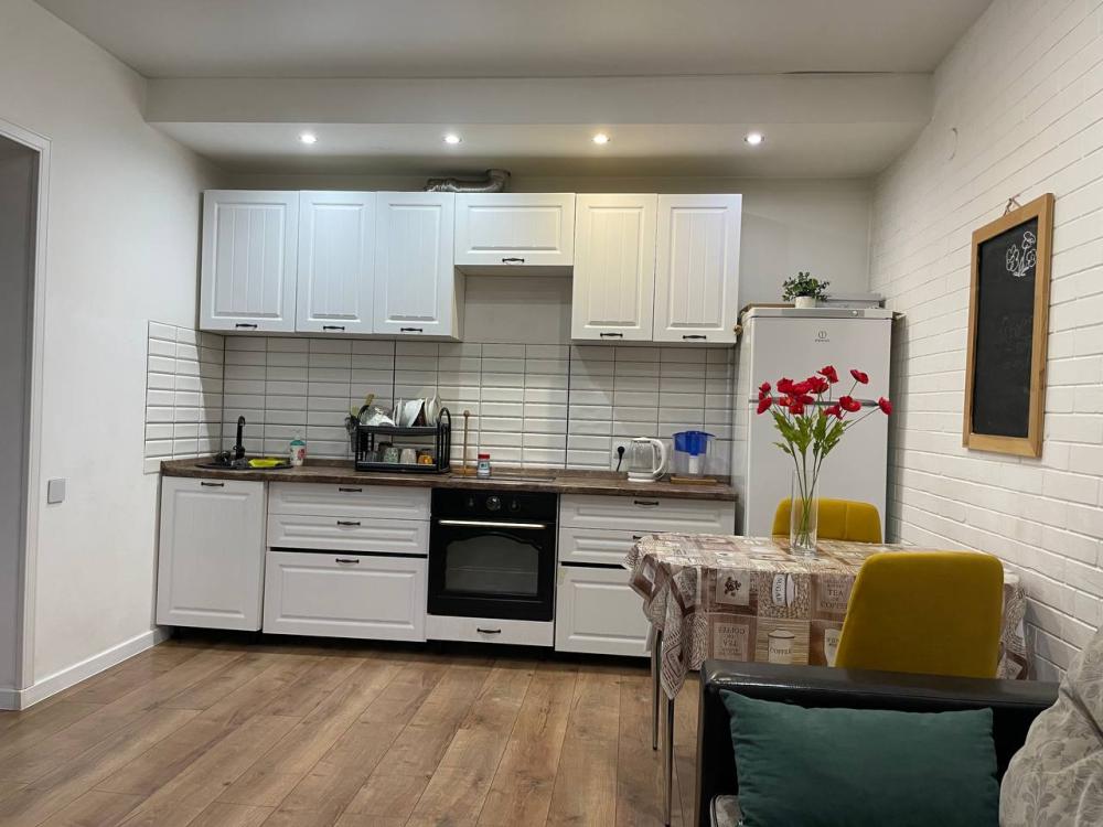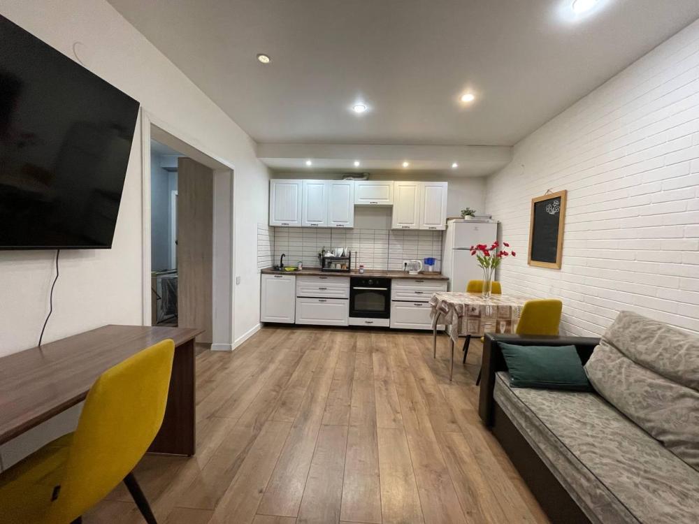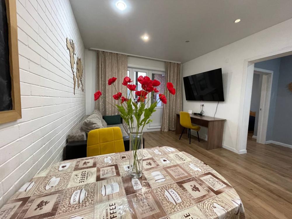Квартира с кухней-гостиной и отдельной спальней с вместимостью до 4 гостей. В квартире есть все, что нужно для комфортного проживания: двуспальная кровать, раскладной диван, постельное белье и полотенца, посуда, микроволновка, телевизор, Wi-Fi, стиральная машина, гладильные принадлежности, холодильник.