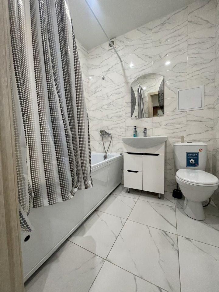 Уютные апартаменты, оборудованные всем необходимым для комфортного проживания. В апартаментах: двуспальная кровать, раскладной диван, кухня с обеденной зоной, оборудованная необходимой техникой и посудой, санузел с ванной и стиральной машиной.