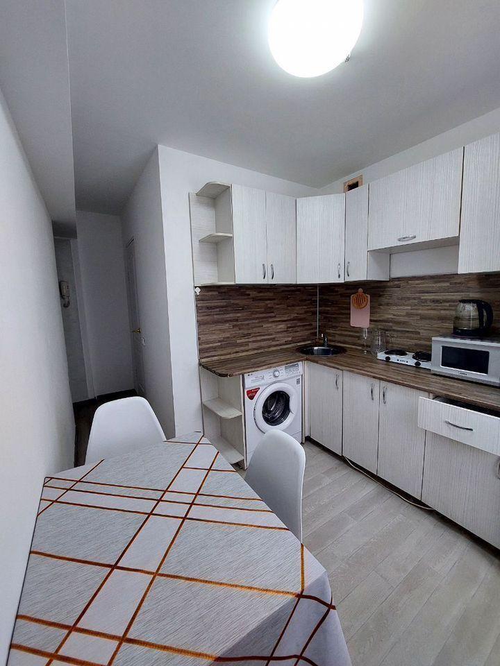Уютные апартаменты, оборудованные всем необходимым для комфортного проживания. В апартаментах: двуспальная и две односпальные кровати, раскладное кресло-кровать, кухня с обеденной зоной, оборудованная необходимой техникой и посудой, санузел с ванной.