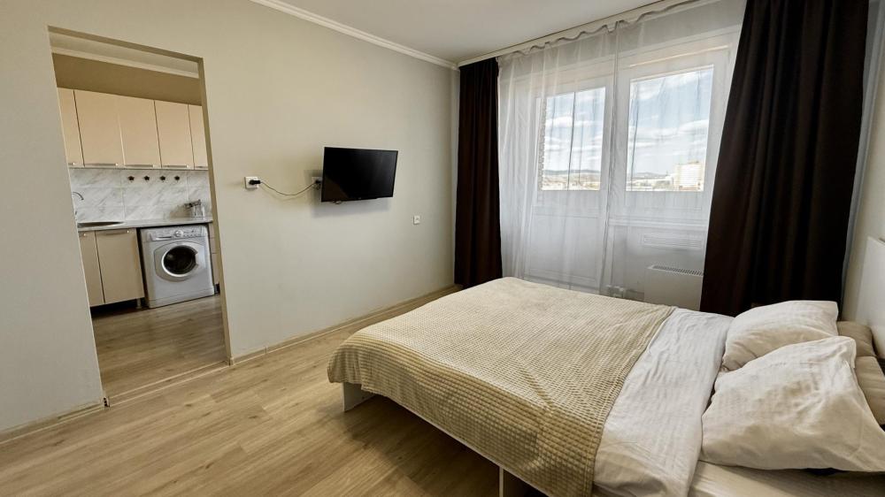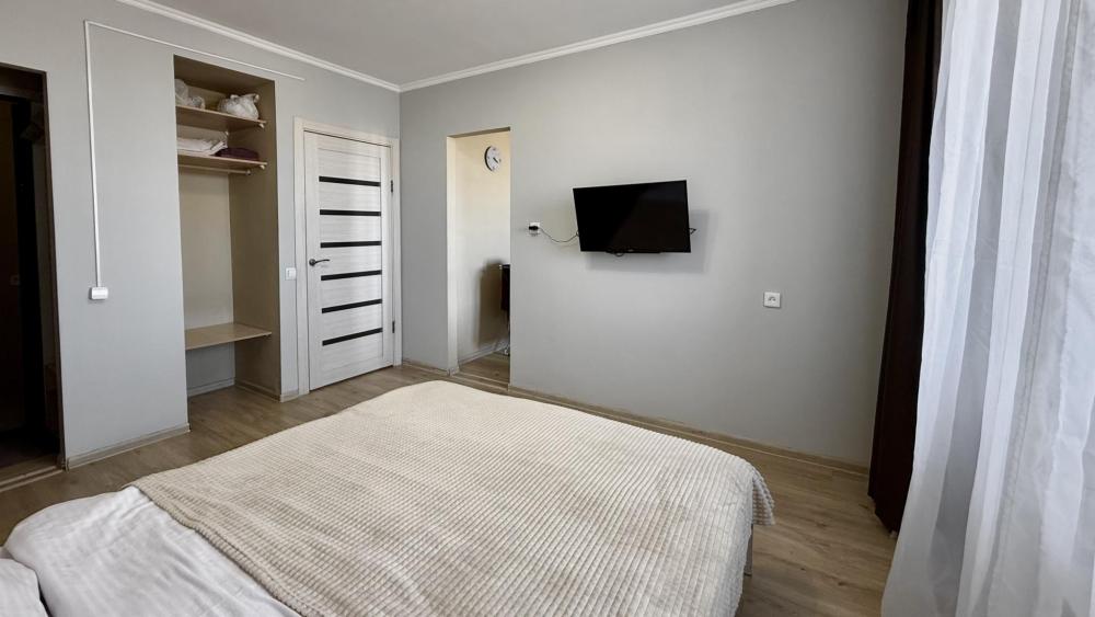 — В квартире может комфортно разместиться два человека, так как спальное место предусмотрено только для двоих — двуспальная кровать. При необходимости можно разместить маленького ребенка, если ему будет удобно.
