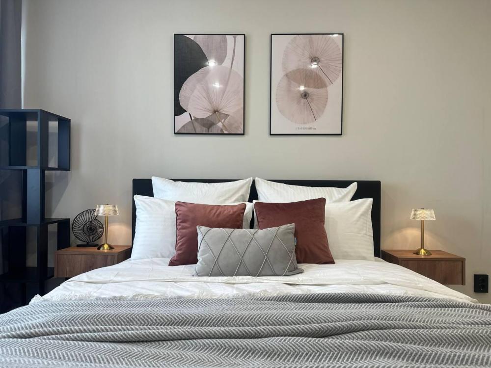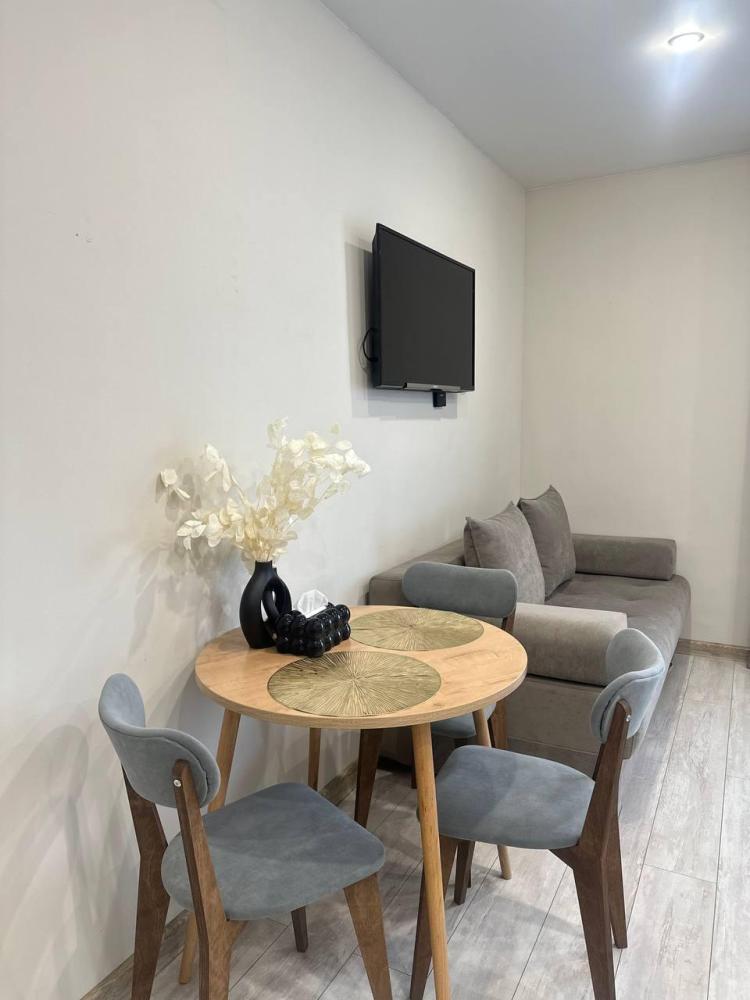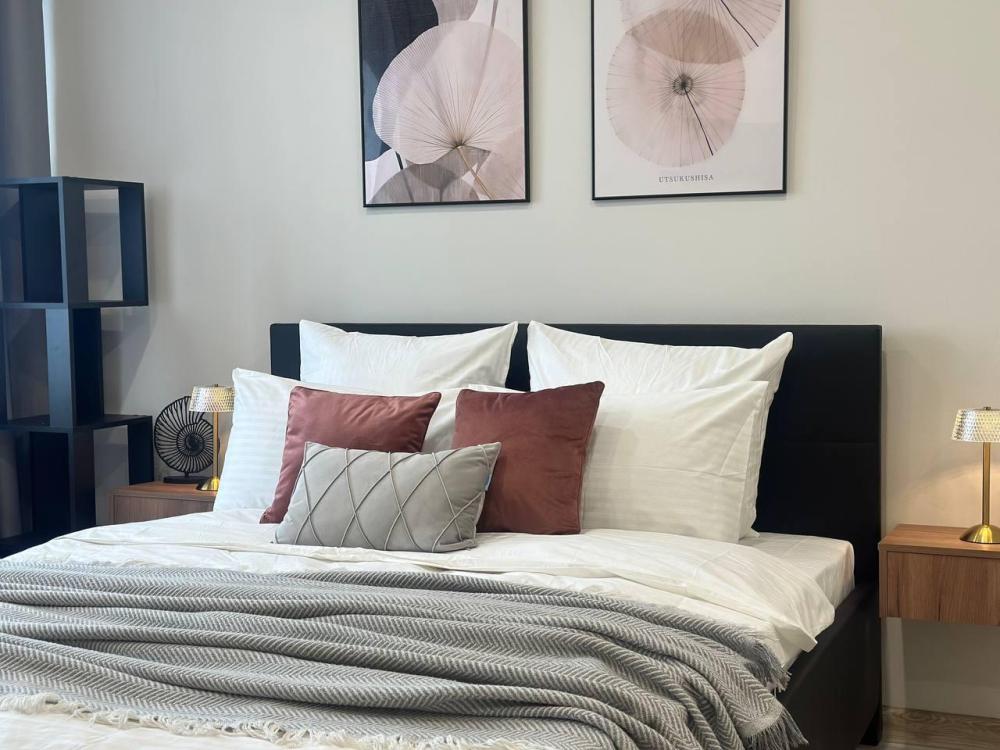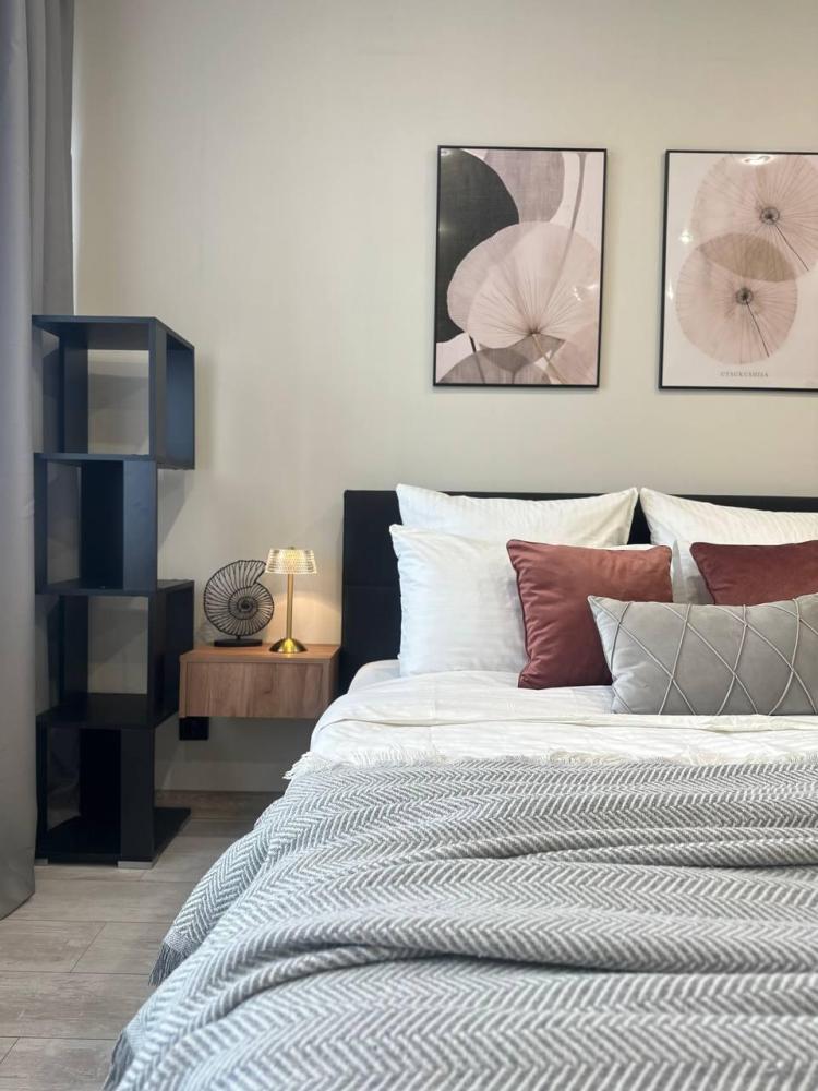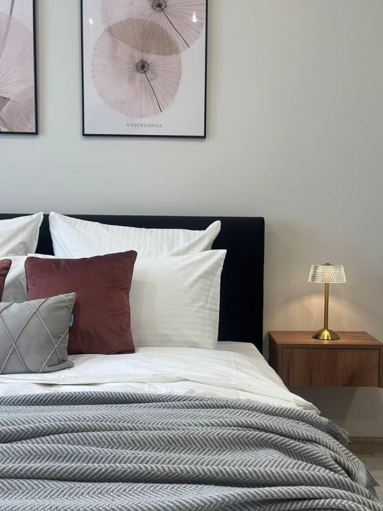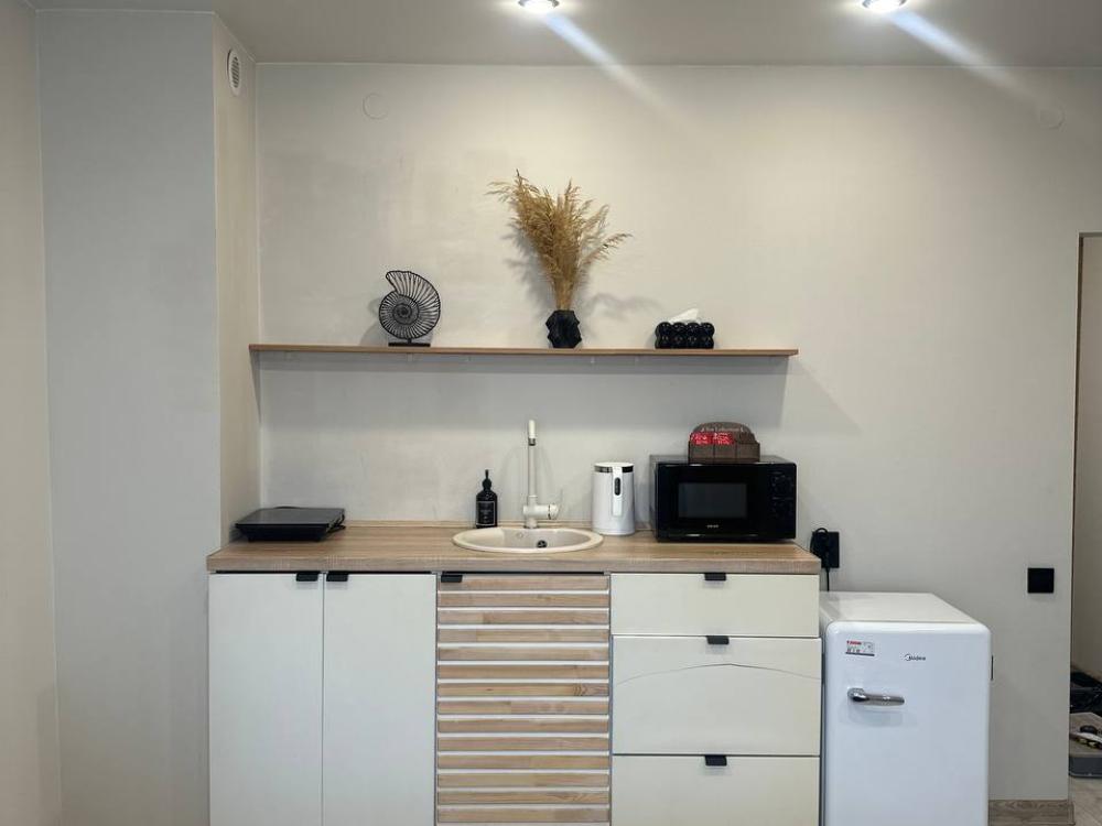 Апартаменты студия для 4 гостей. В квартире белоснежное постельное белье, личные средства гигиены, посуда, техника. В квартире: двуспальная кровать (180х200), раскладной диван - прямой, стиральная машина, фен, утюг, сушилка для одежды, ТВ и высокоскоростной Wi-Fi. Оборудованная кухня (холодильник, варочная панель, микроволновая печь, чайник)