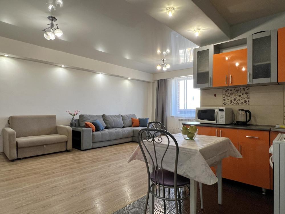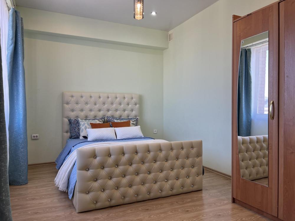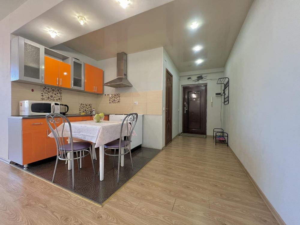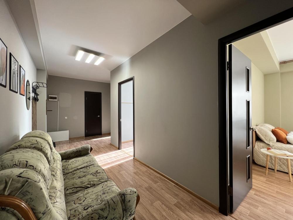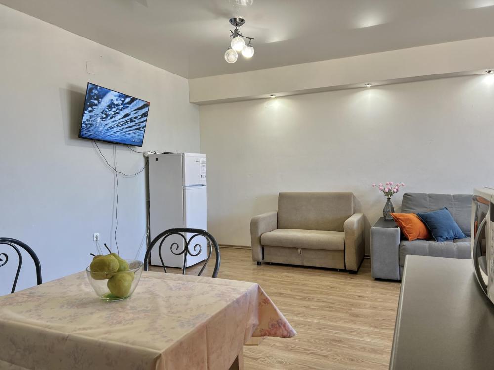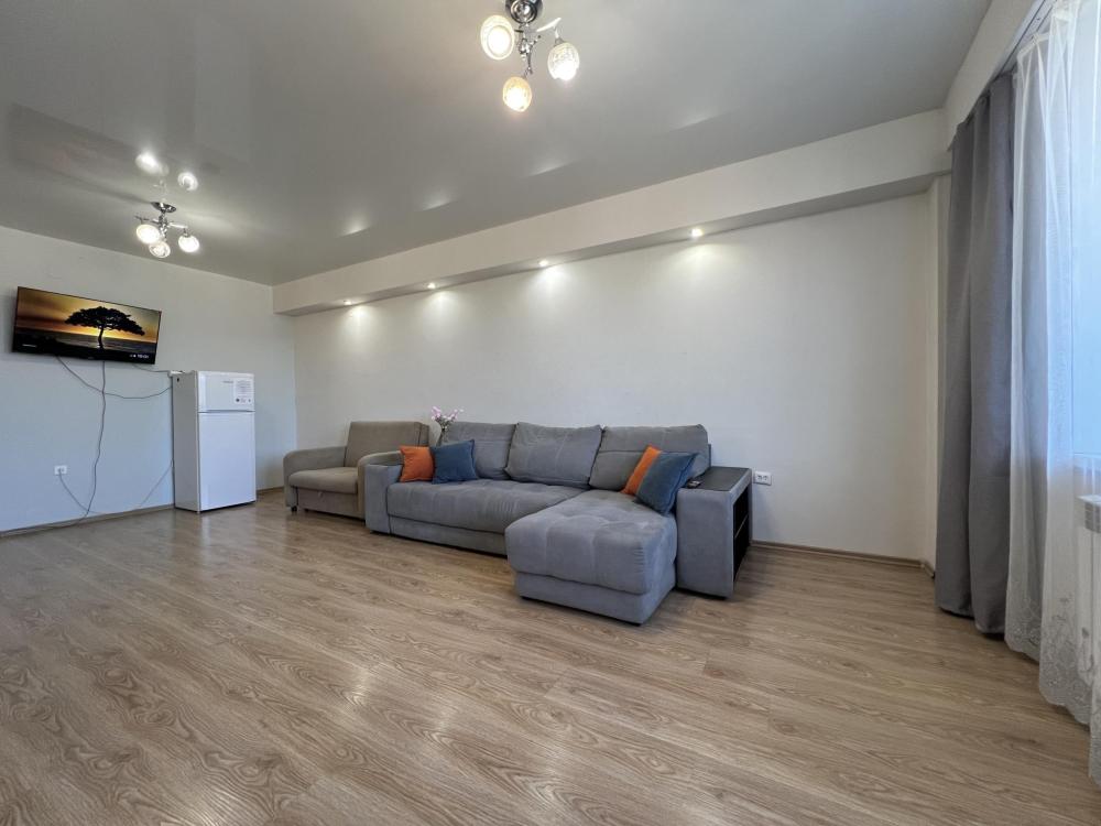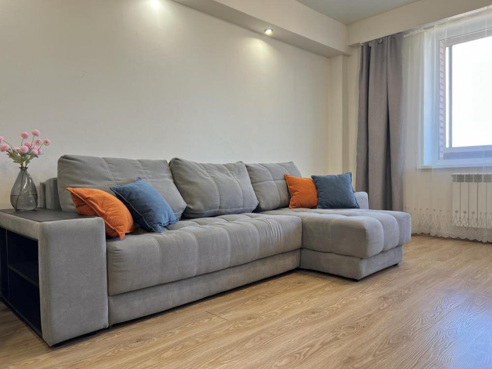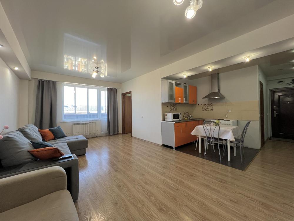Двухкомнатная квартира на 6 этаже в новом доме в районе Саяны. Спальных мест 6: двуспальная кровать и два раскладных дивана. Кухонная зона оснащена всем необходимым для приготовления пищи, есть чайник, микроволновка, посуда, столовые приборы. LED TV, постельное белье, полотенца, чайный набор, банные принадлежности.