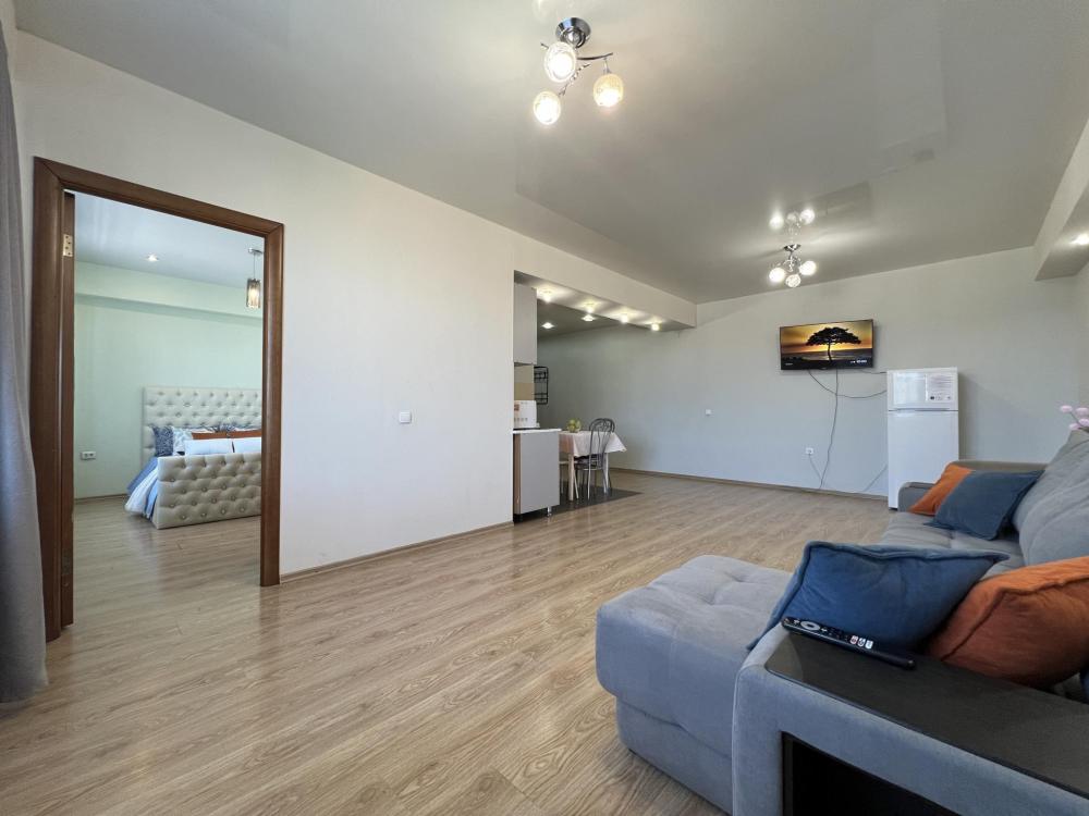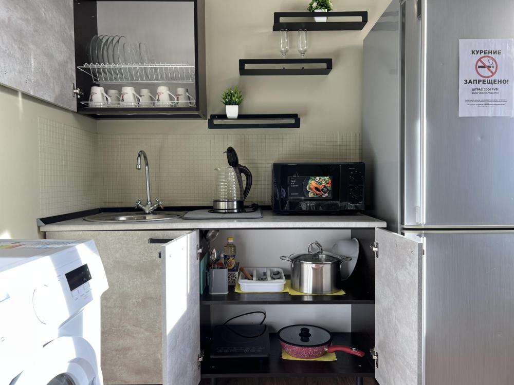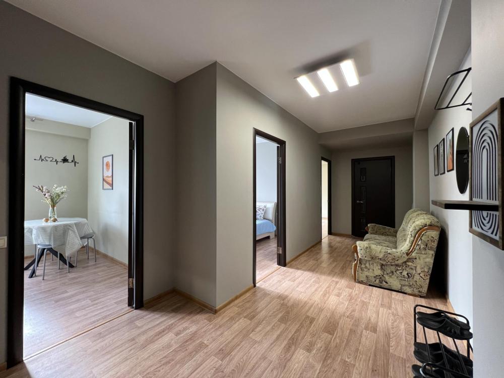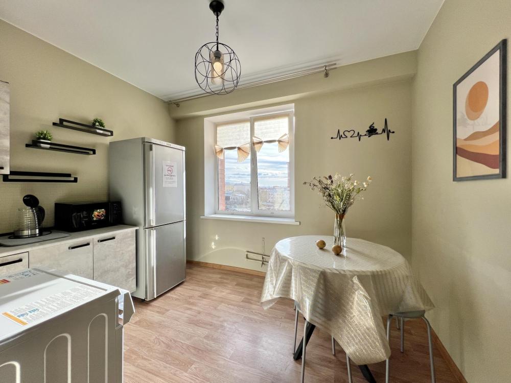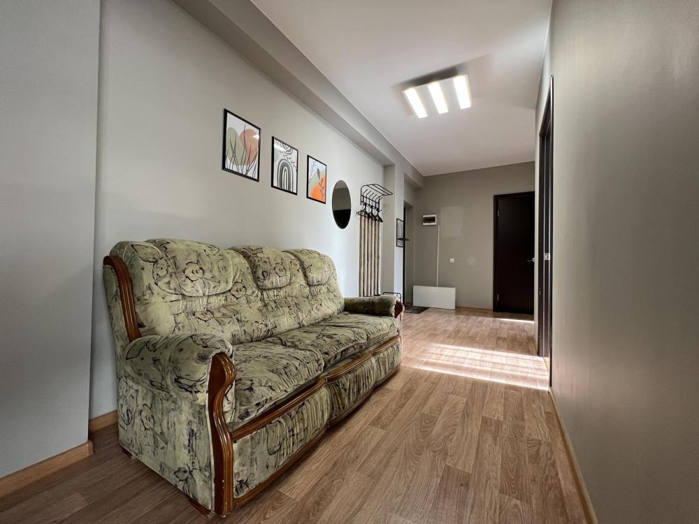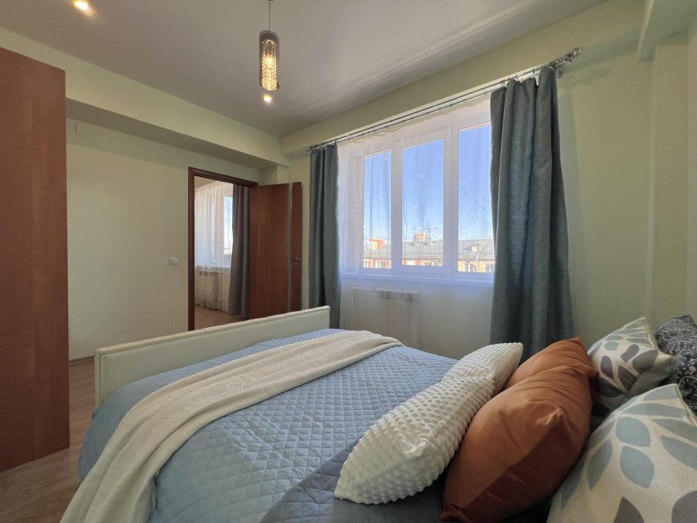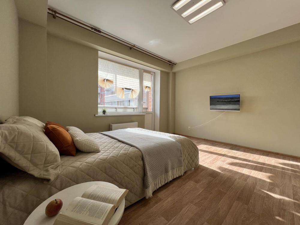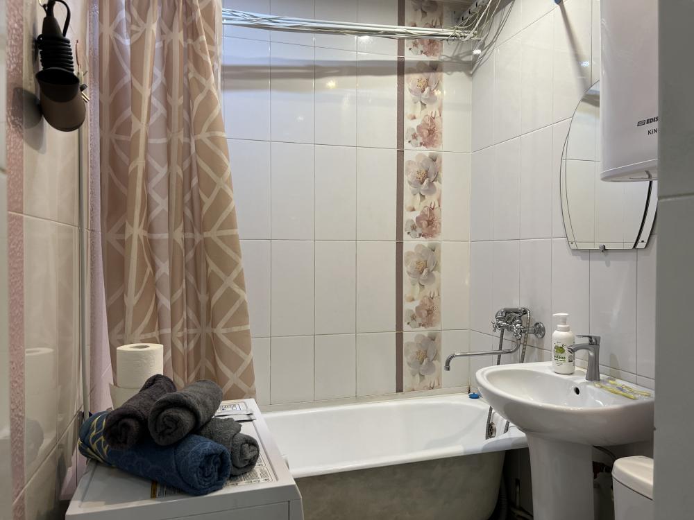 Двухкомнатная квартира на 6 этаже в новом доме в районе Саяны. Спальных мест 6: двуспальная кровать и два раскладных дивана. Кухонная зона оснащена всем необходимым для приготовления пищи, есть чайник, микроволновка, посуда, столовые приборы. LED TV, постельное белье, полотенца, чайный набор, банные принадлежности.