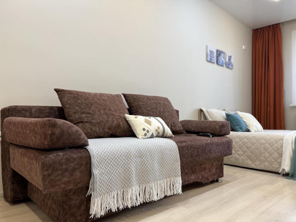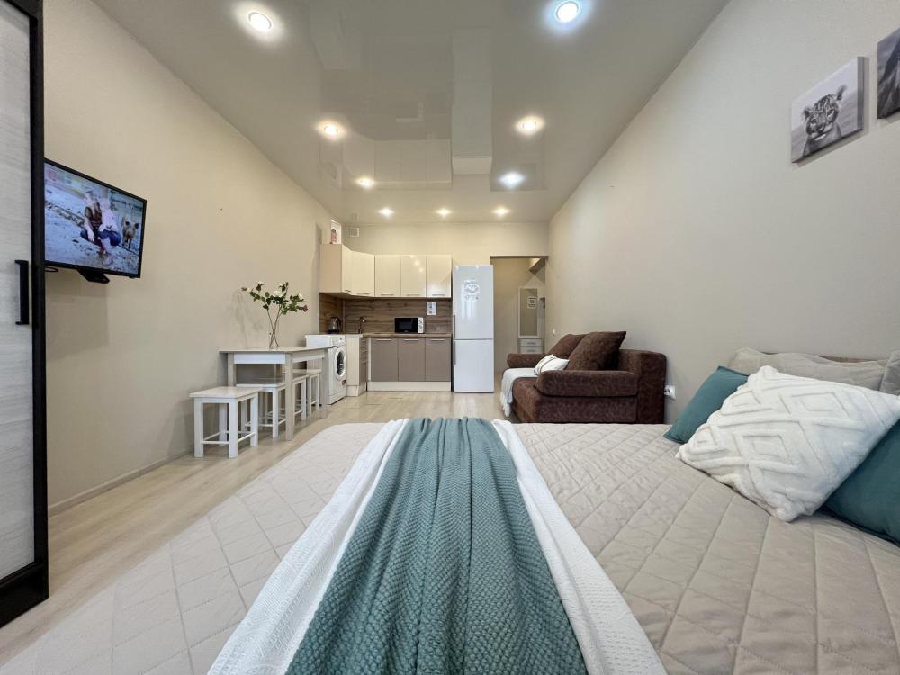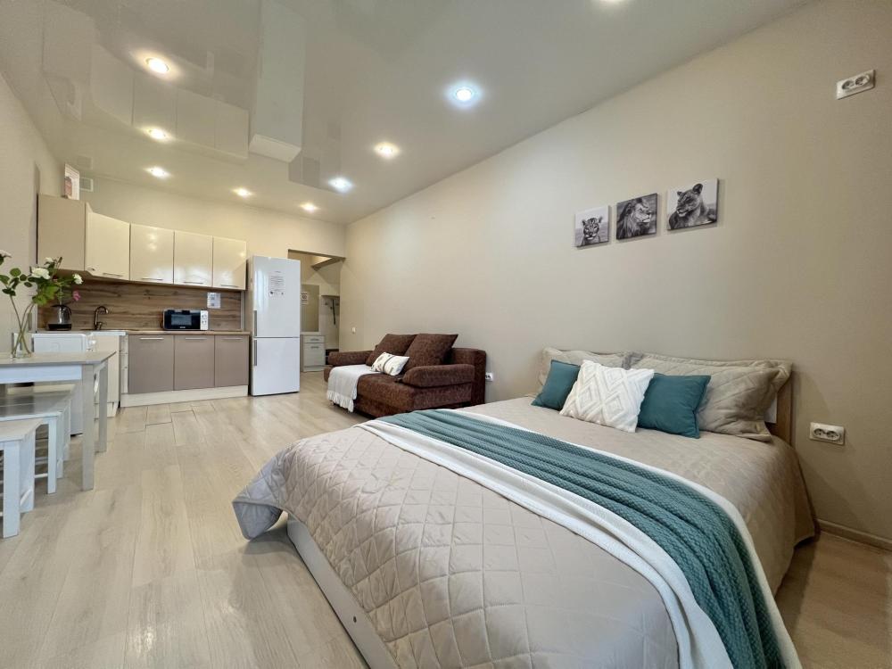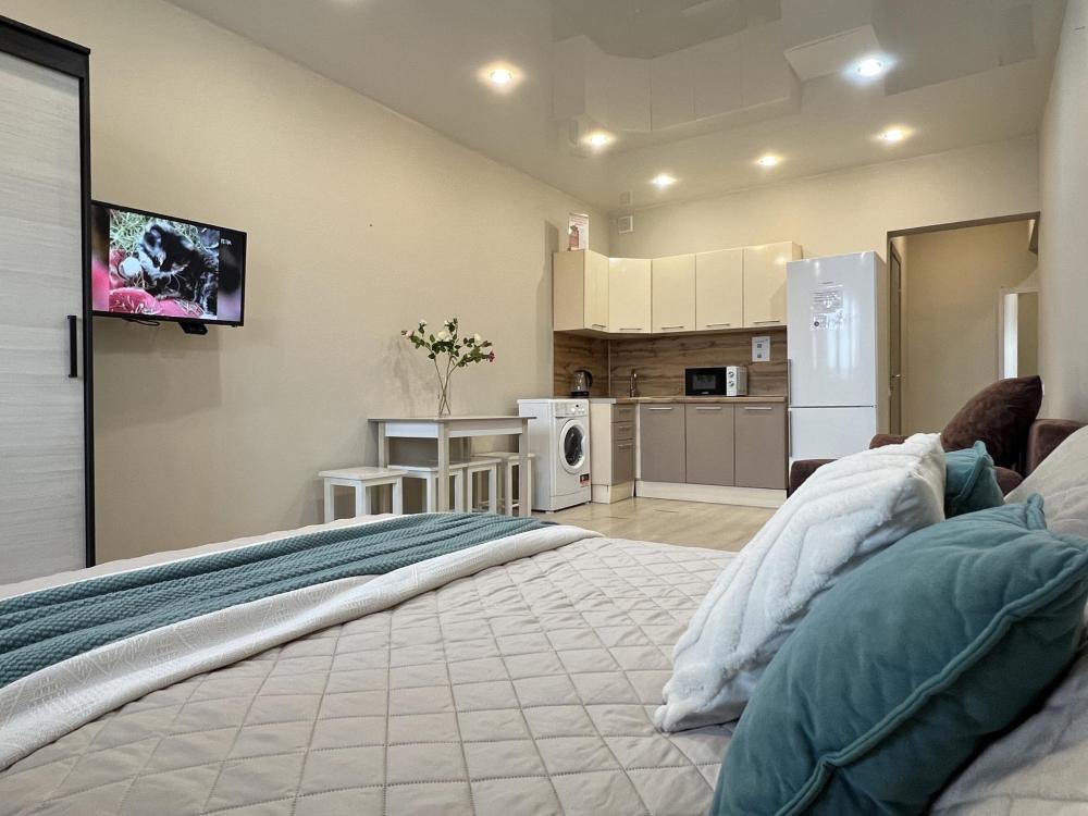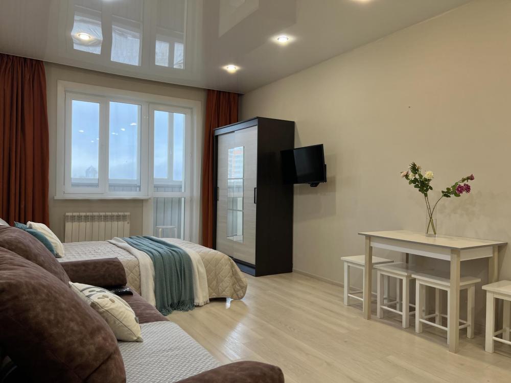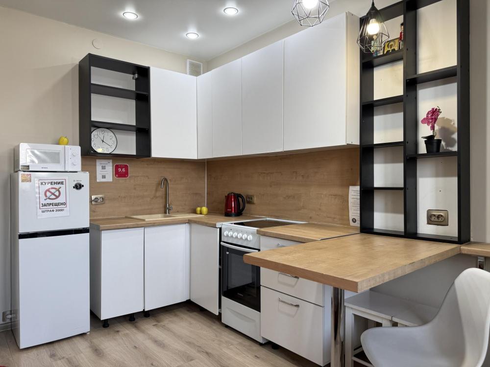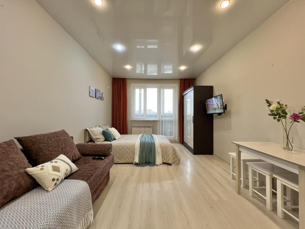 Студия на 5-м этаже "Как дома" 4 спальных места: двуспальная кровать (140 см) и раскладной диван Кухонная зона: микроволновка, эл. плита, чайник, холодильник, посуда, столовые прибор. Гостям предоставляется: банные принадлежности, хлопковое постельное белье, набор полотенец, Wi-Fi, LED-TV, 200 кабельных каналов, Фен, утюг, бойлер, вентилятор. отчетные документы с QR-кодом и чеками С 21 года. Строго не для мероприятий! Курение в квартире и на лестничной площадке строго запрещено! Благодарим за понимание