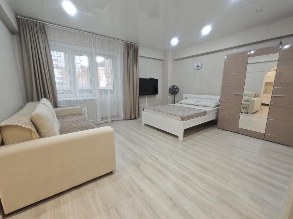 Представляем Вам уютную однокомнатную квартиру. В вашем распоряжении комфортная двуспальная кровать, раскладной диван и кресло кровать (расположено в кухне). Удобное расположение дома, рядом остановки общественного транспорта (автобусы, трамваи) до центра 15 минут, кафе, магазины Пятерочка, Светофор, Маяк. В шаговой доступности военный госпиталь, ТЦ Октябрьский, Фабричный маркет, Диагрупп. В соседнем доме прачечная Чистофф. ⏰Правила проживания и заселения: - время заезда – с 14.00 часов, время выезда - до 12.00 часов (независимо от времени заезда); - ранний заезд и поздний выезд предоставляются по договоренности за дополнительную плату; - отчетные документы по запросу; - бесконтактное заселение 24/7 по документу, удостоверяющему личность; - запрещенное проведение шумных вечеринок и мероприятий! - запрещено проживание с животными! - квартира не сдается лицам в нетрезвом состоянии и лицам, не достигшим 23 лет! Наши преимущества: - удобное расположение, в шаговой доступности МЦ Диамед Диагрупп, военный госпиталь, центр Тэнгэри. В 10 минутах республиканская больница, центр ядерной медицины, перинатальный центр. Прямые маршруты во все части города, до центра города 15 минут; - удобное бесконтактное заселение; - бесплатный Wi-Fi; - мы всегда на связи с вами по всем возникающим вопросам; - качественная уборка перед заселением гостей ☝ Актуальные цены в календаре бронирования. Чтобы узнать окончательную стоимость, вам необходимо выбрать ваши даты и указать количество гостей.
