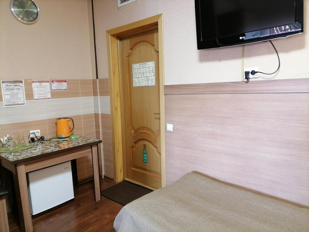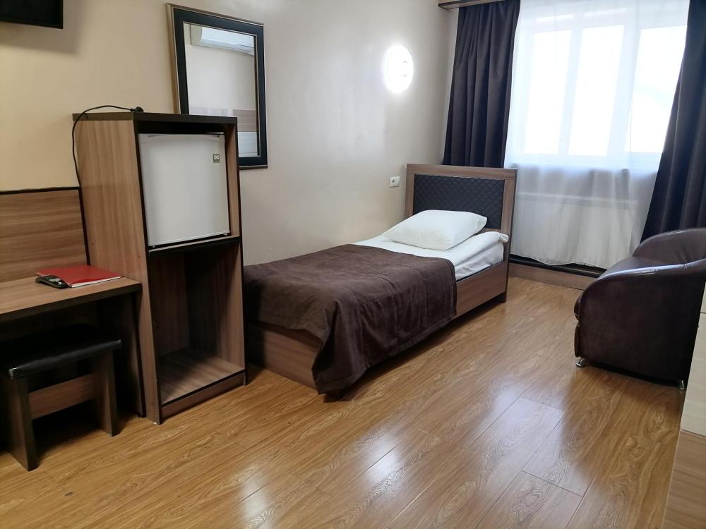 Номер категории "Стандарт" с одной двуспальной кроватью и одной односпальной кроватью. Номер со всеми удобствами.