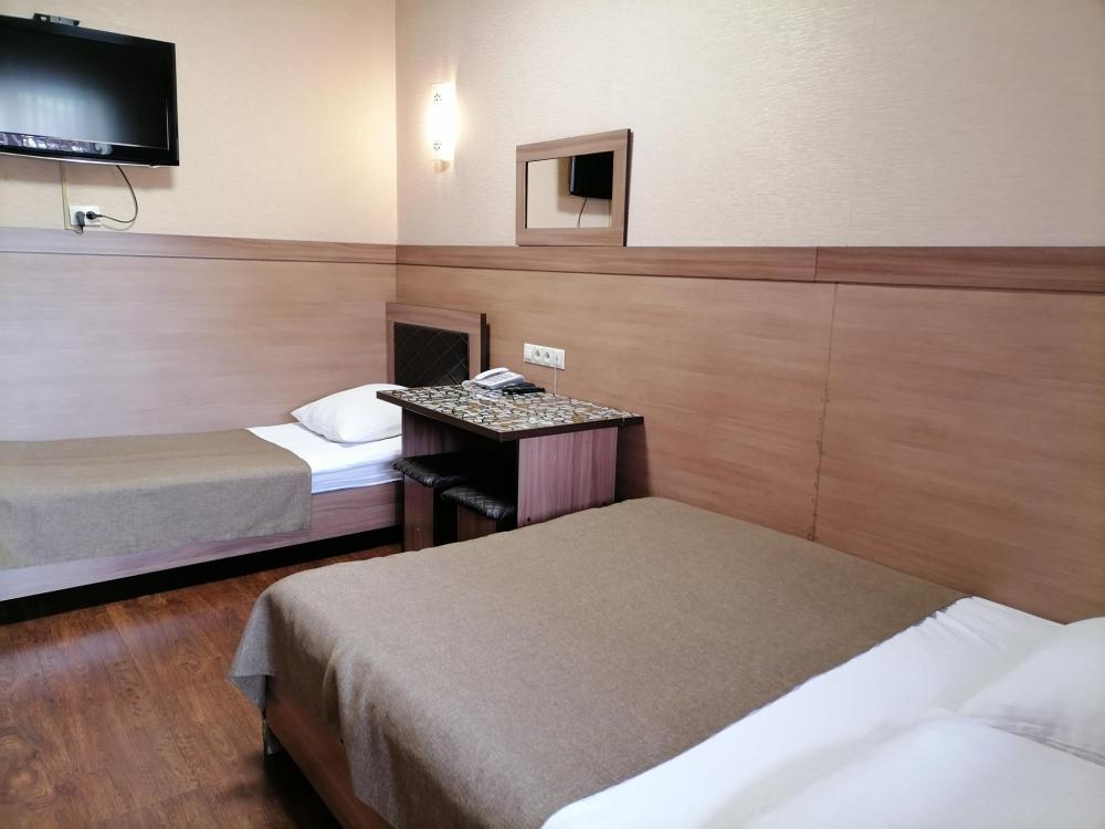Стандартный 2-х местный номер с одной двуспальной и одной односпальной кроватью. Номер со всеми удобствами