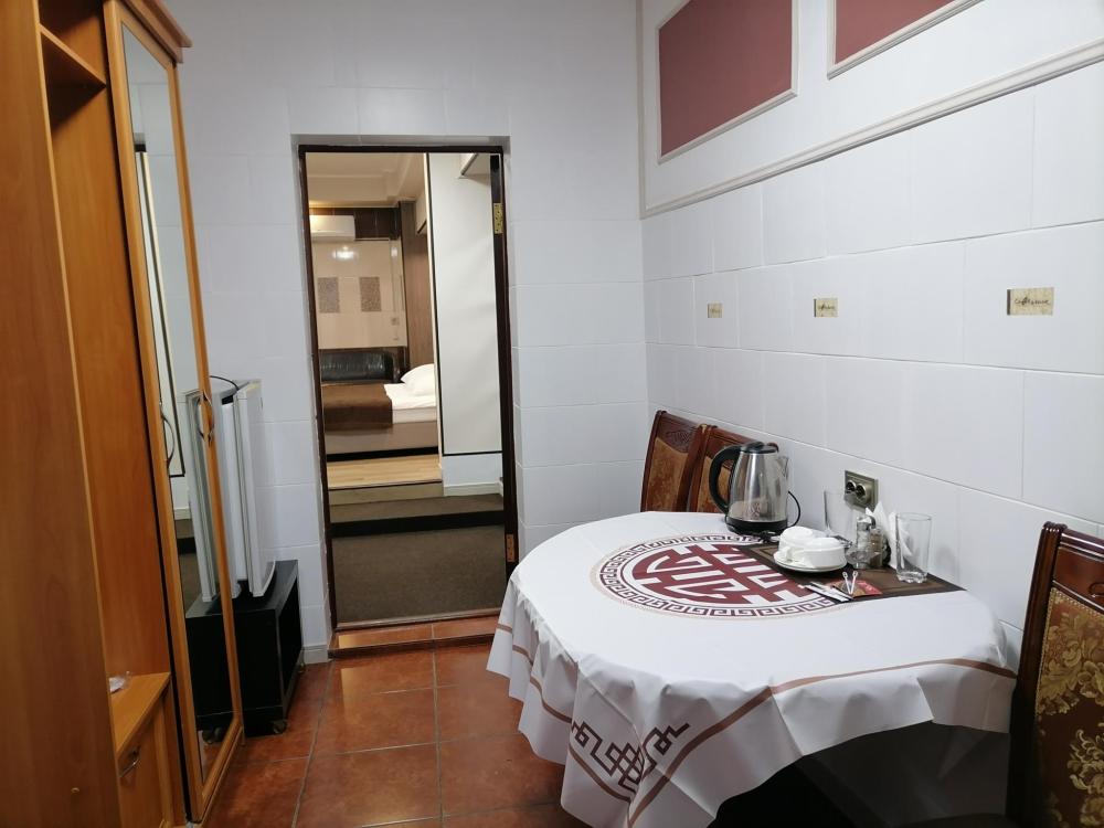 Двухкомнатный современный номер повышенной комфортности. Для удобства гостей в номере – широкая двуспальная кровать, односпальная кровать, диван, зона отдыха, уютная обеденная зона, престижная мебель, ванная комната с душевой кабиной, плазменная цифровая панель, бесплатный Wi-Fi, холодильник, чайник, фен, кондиционер, внутренняя телефония.