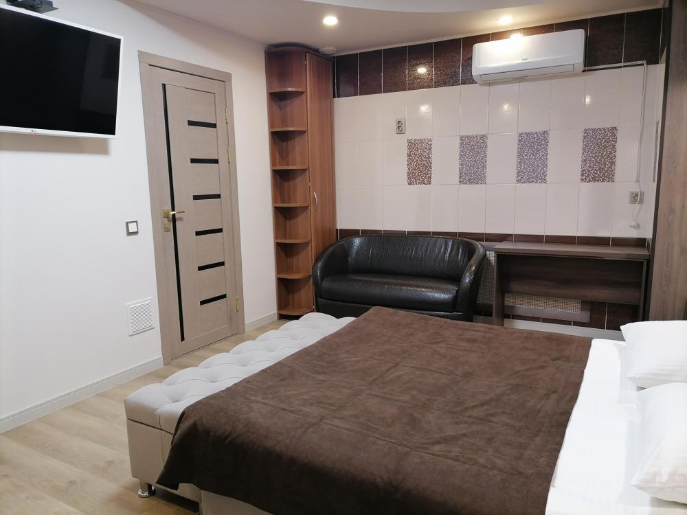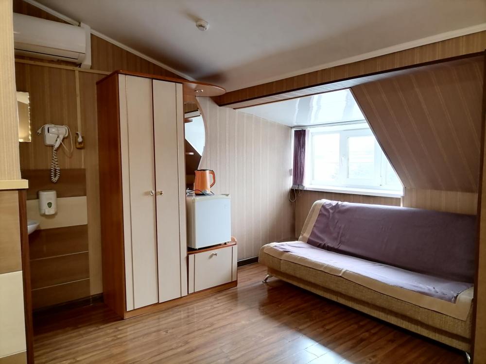 Улучшенный номер с двуспальной кроватью и диваном. Номер со всеми удобствами.