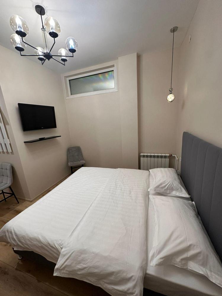 Двухспальная кровать, телевизор, санузел, чайник.