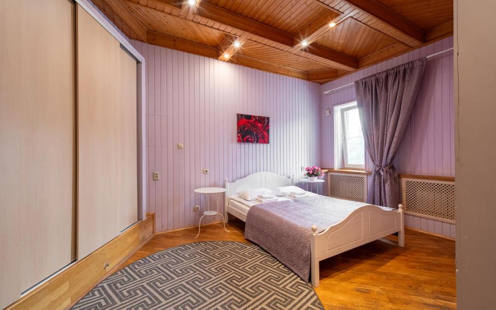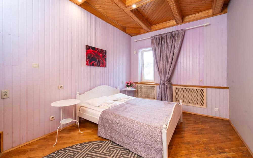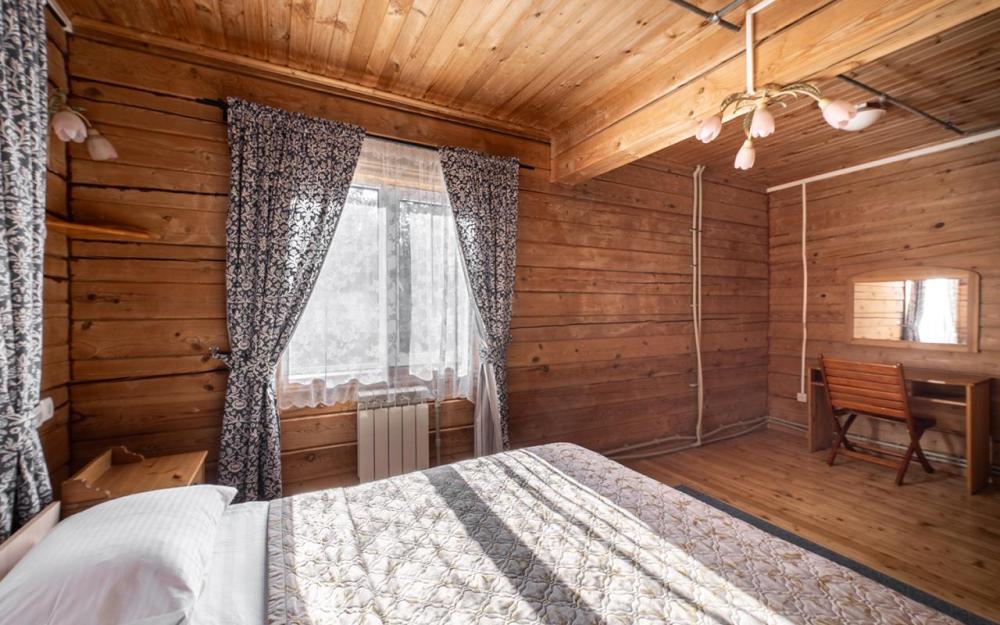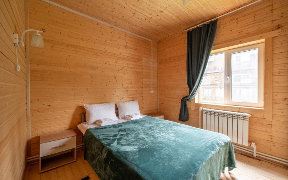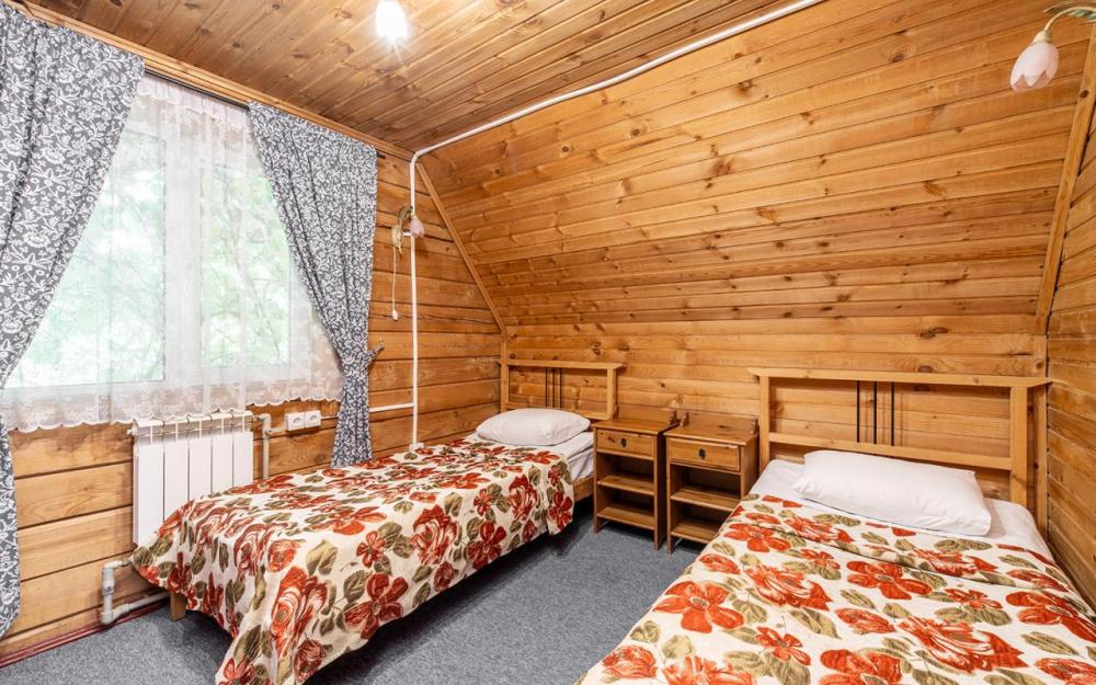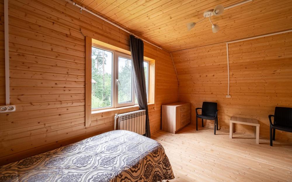 2-х этажный коттедж, 4 спальни, гостиная с кухонной зоной, 2 санузла, мангал. На 1 этаже в гостиной: раскладной диван, ТВ; в кухонной зоне: кухонный гарнитур, холодильник, микроволновая печь, встроенная плита, обеденный стол на 10 персон, набор посуды, кухонные принадлежности, электрический чайник; в спальне 1: двуспальная кровать; в спальне 2: двуспальная кровать; в ванной комнате: душевая кабина, туалет. На 2 этаже в спальне 3: две раздельные кровати; в спальне 4: двуспальная кровать, ТВ; в ванной комнате: душевая кабина, туалет; балкон.
