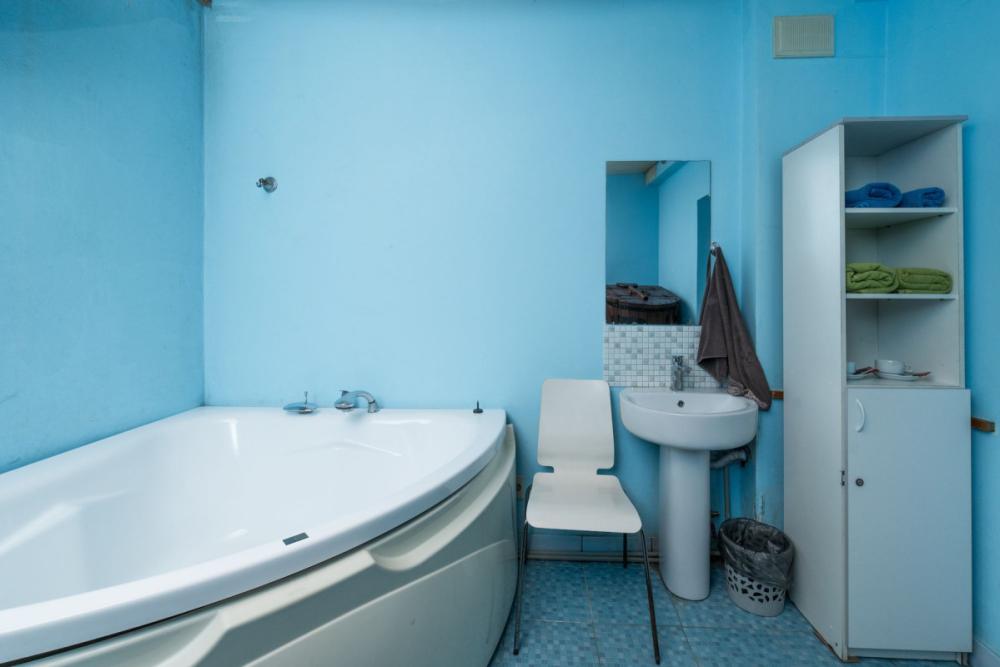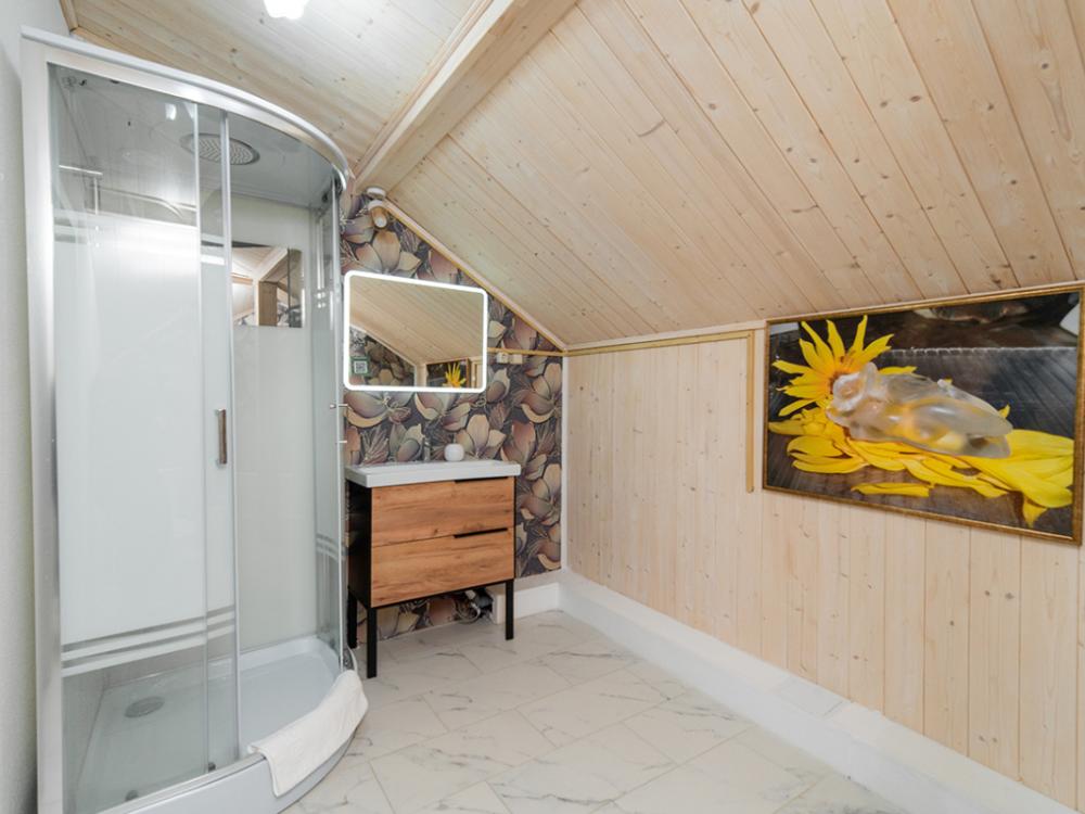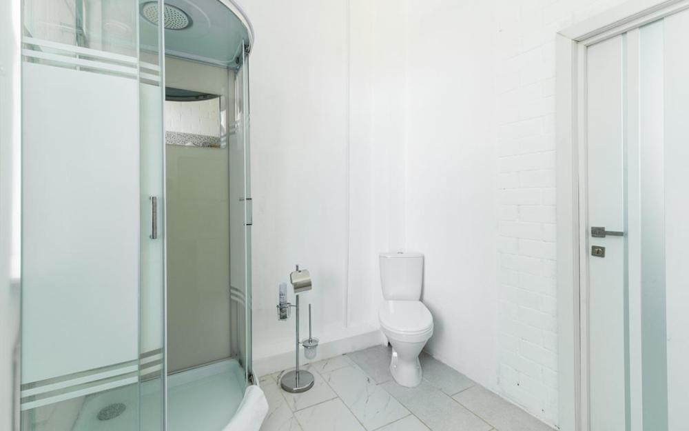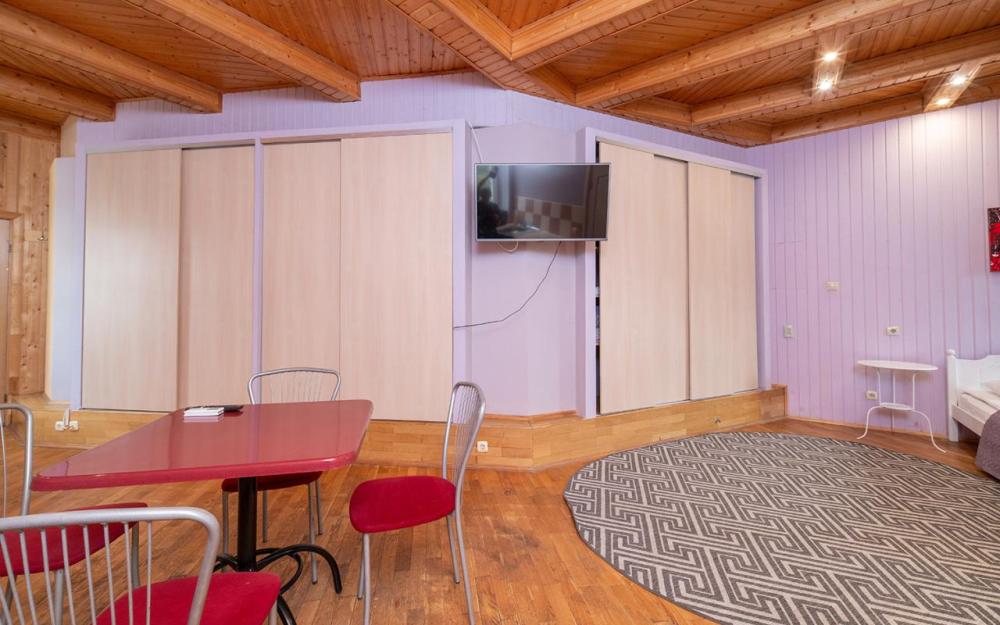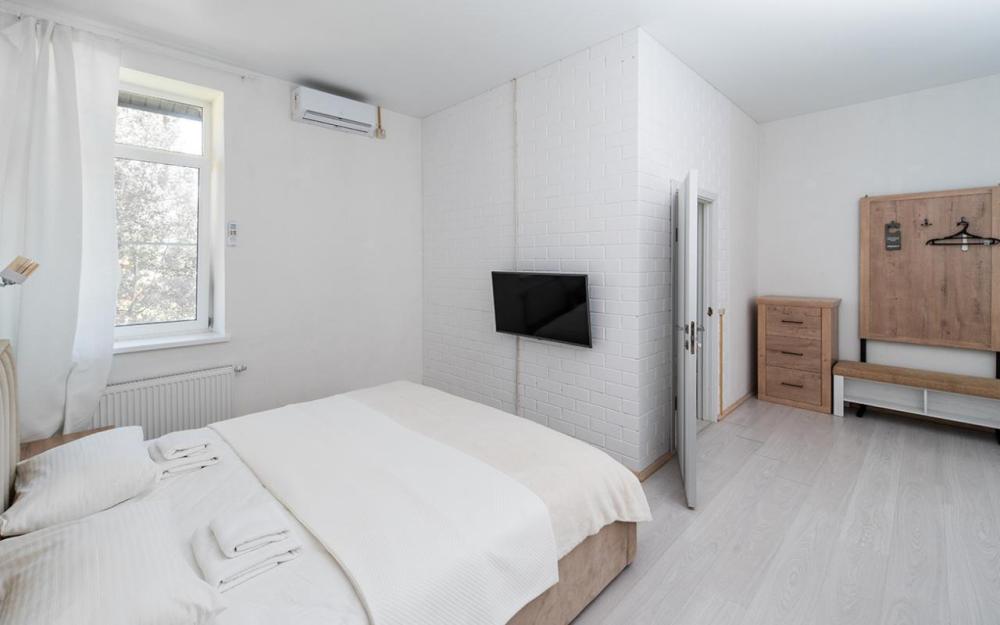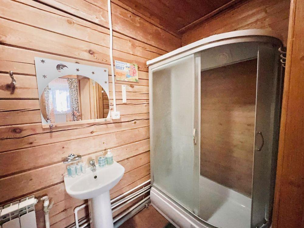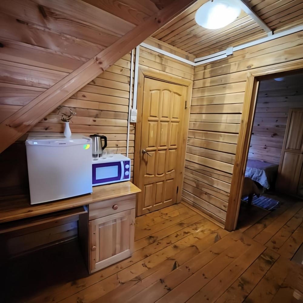 В номере: двуспальная кровать, на втором уровне 2-х спальный ортопедический матрас, ТВ, холодильник, душевая кабина, туалет, фен.