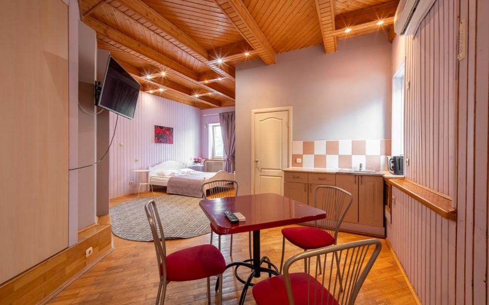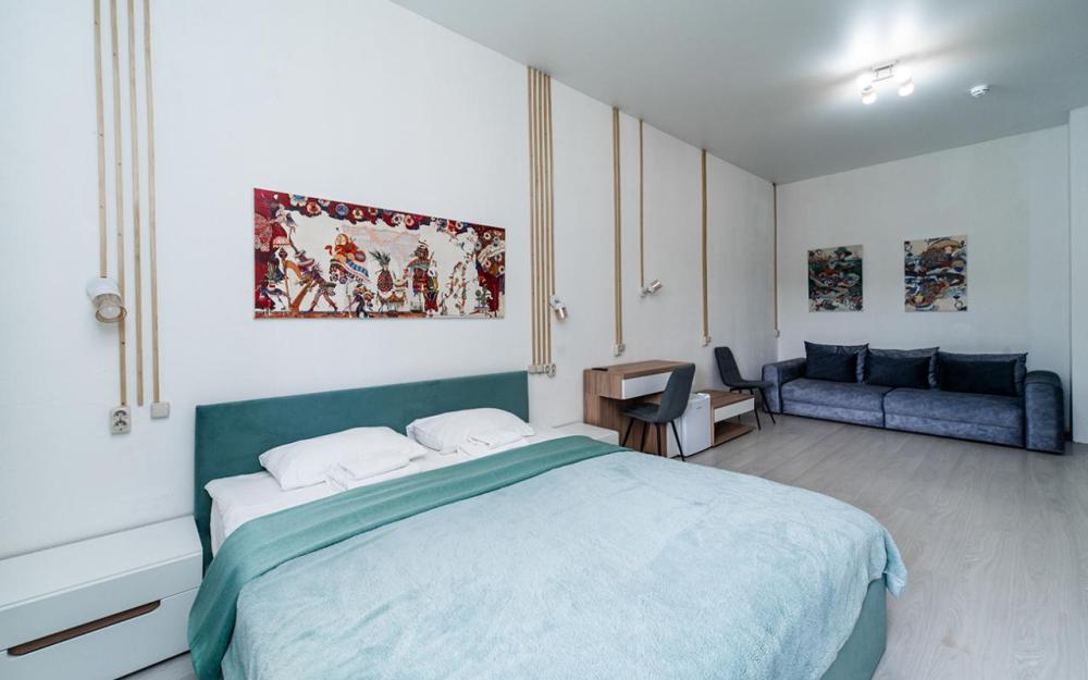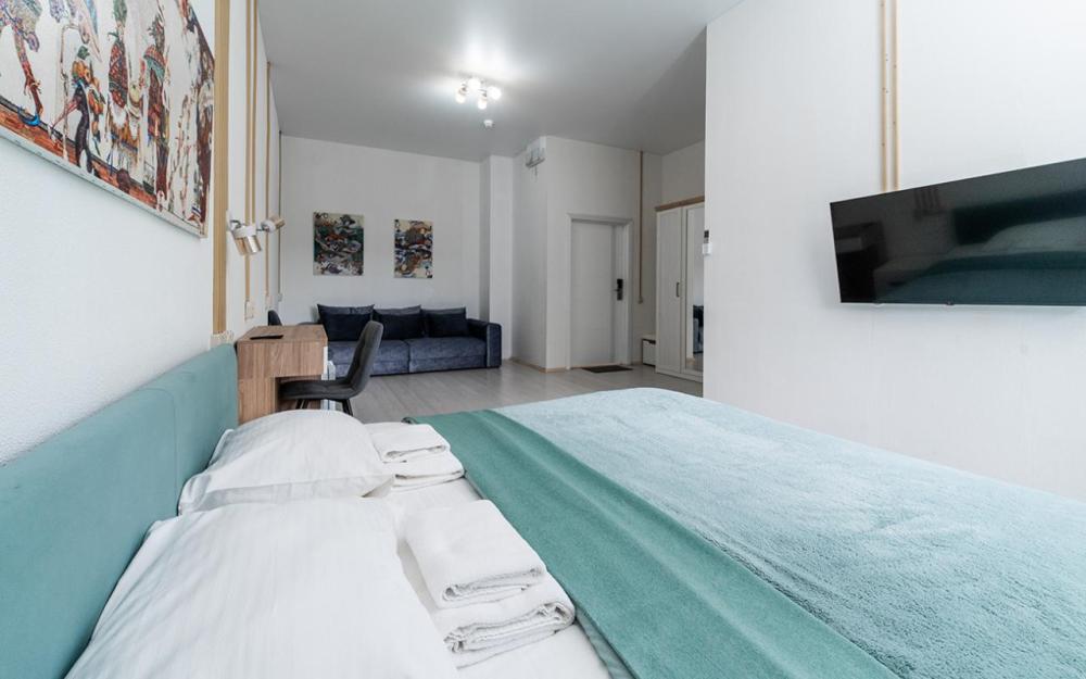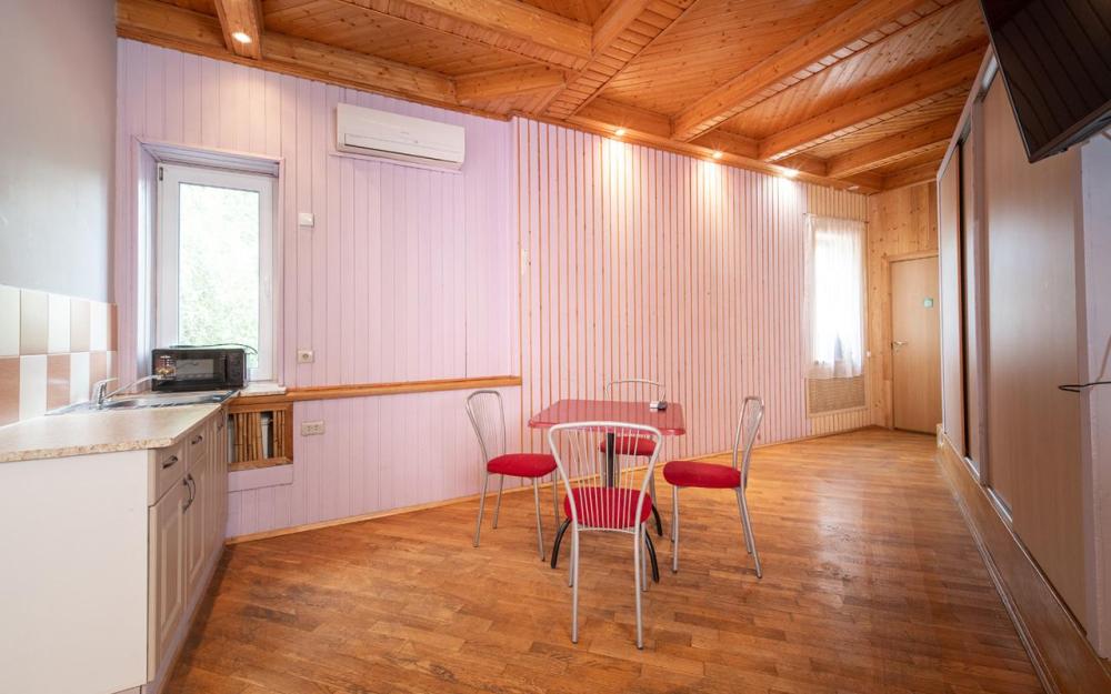 В номере: двуспальная кровать, диван (в некоторых номерах), кухонная зона, ТВ, холодильник, душевая кабина/джакузи, туалет, фен, сейф.