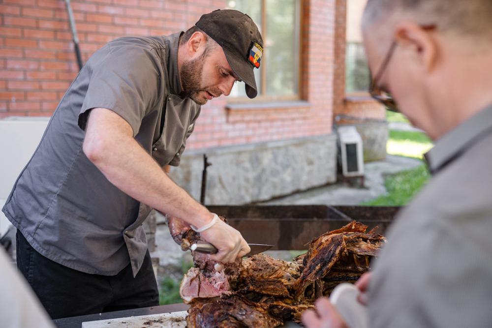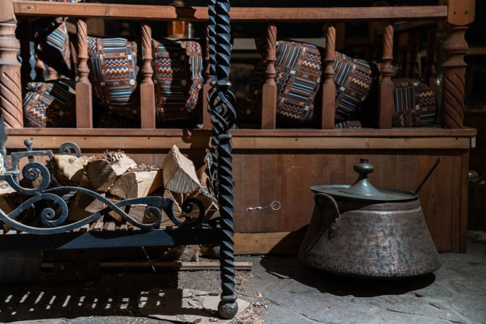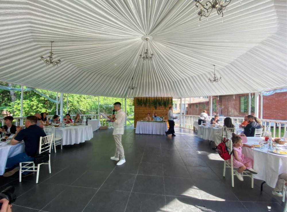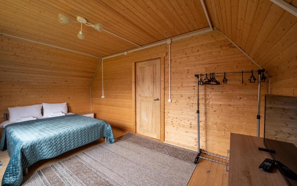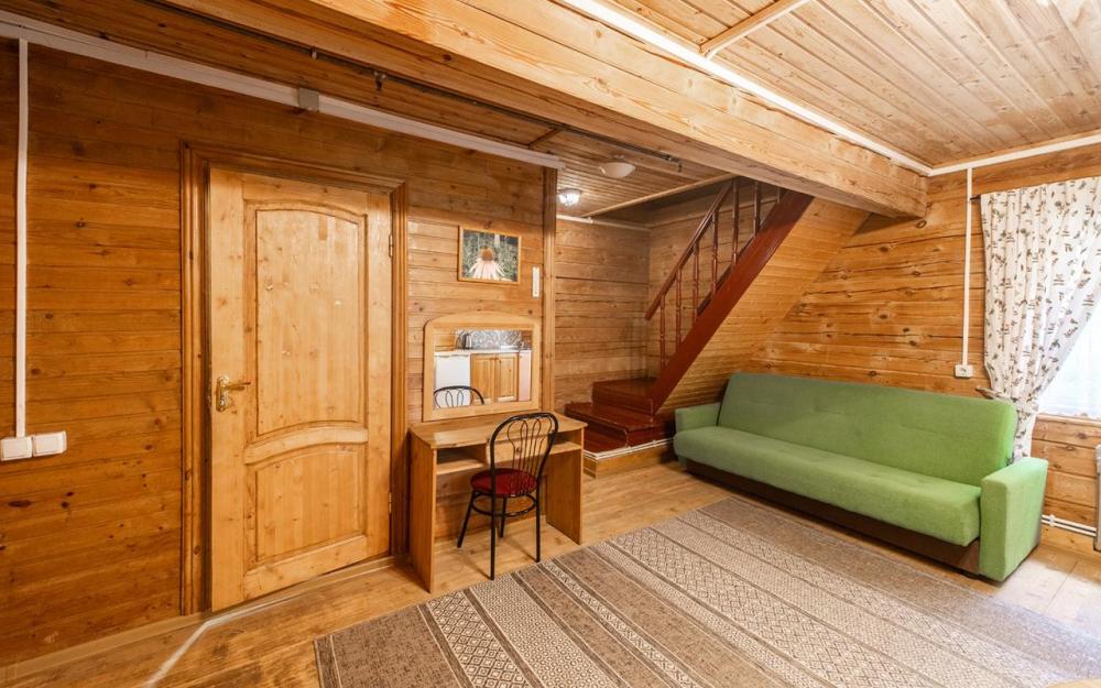 2-х этажный коттедж, спальня, гостиная с кухонной зоной, 2 санузла, мангал. На 1 этаже в гостиной: раскладной диван, ТВ; в кухонной зоне: холодильник, микроволновая печь, стол, набор посуды, электрический чайник; в ванной комнате: душевая кабина, туалет. На 2 этаже в спальне: двуспальная кровать; в ванной комнате: туалет, раковина; балкон.