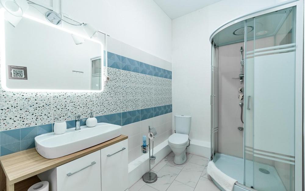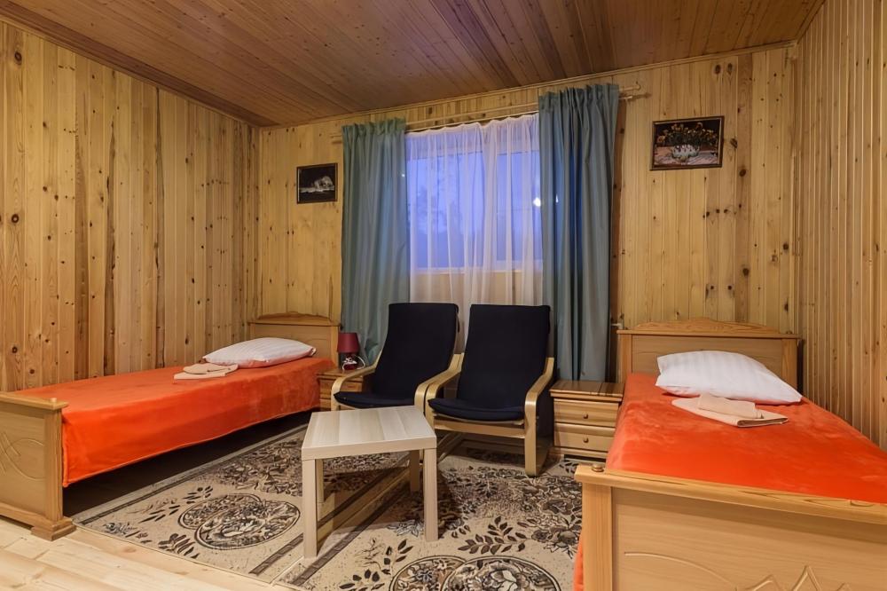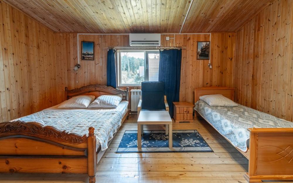 В номере: двуспальная и односпальная кровати, ТВ, холодильник, душевая кабина, туалет.