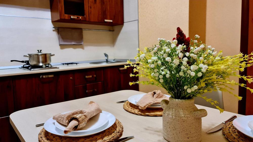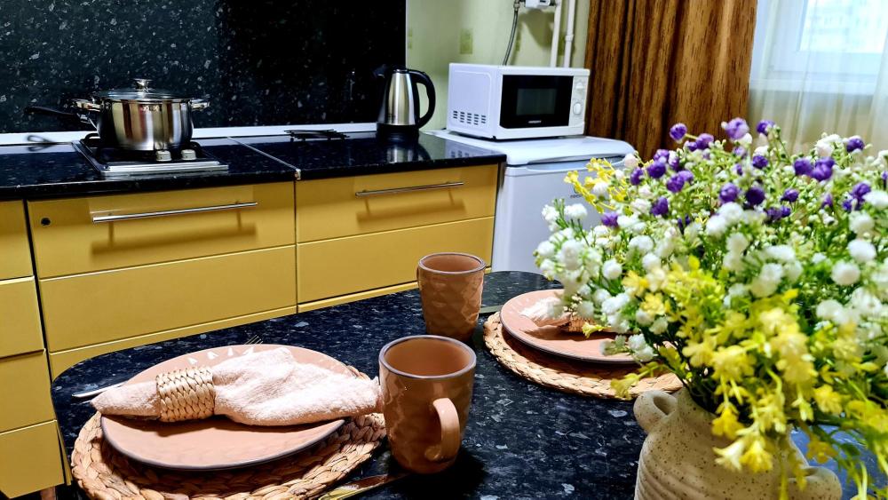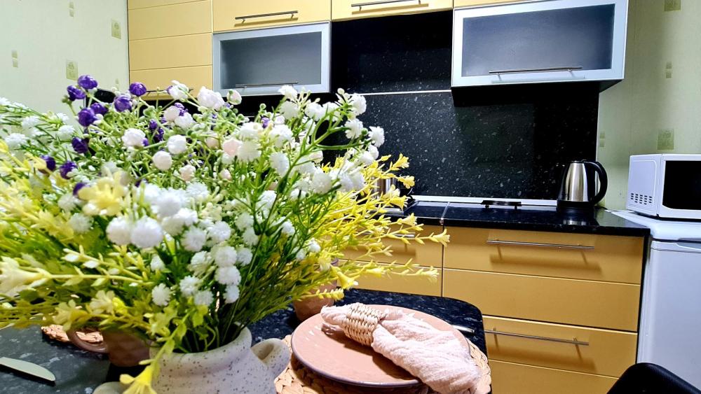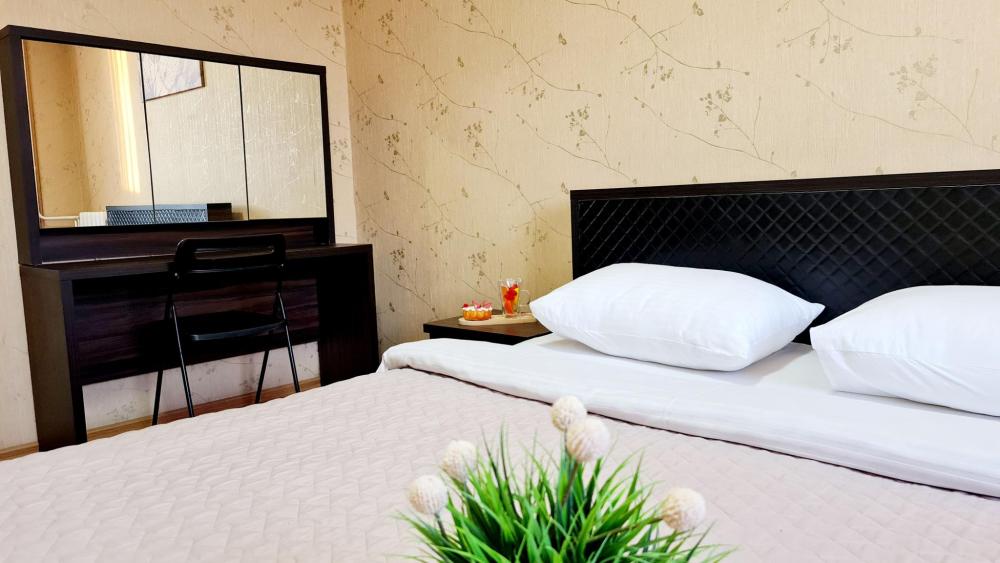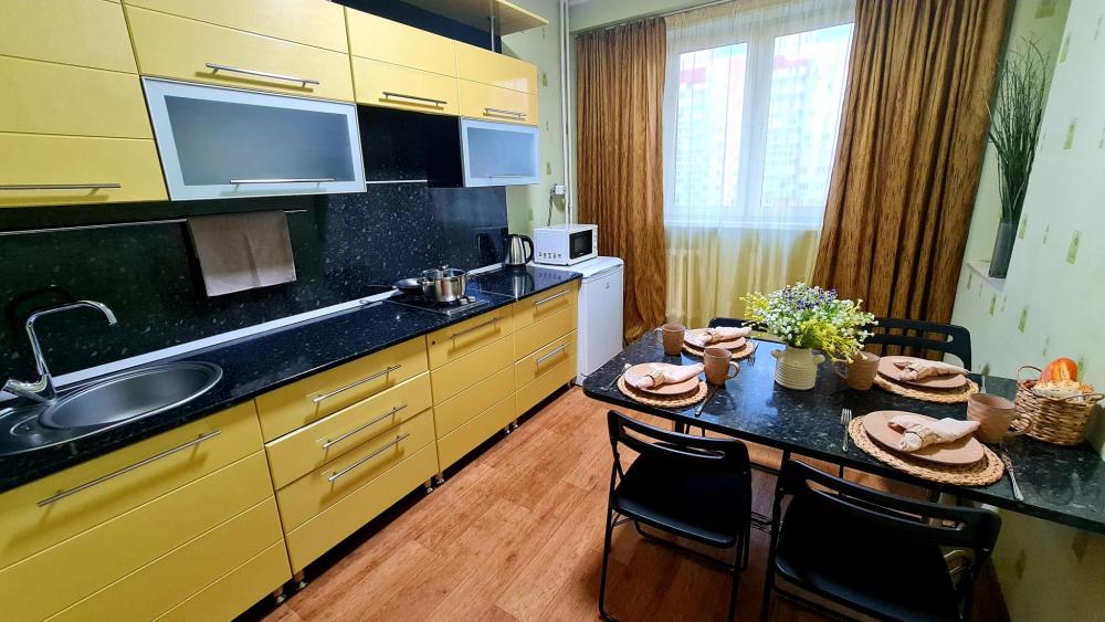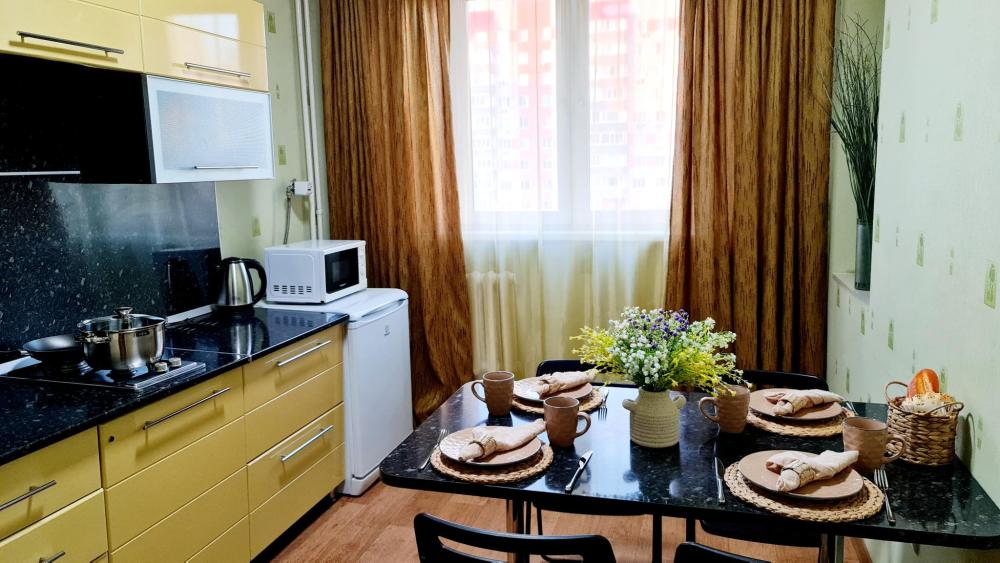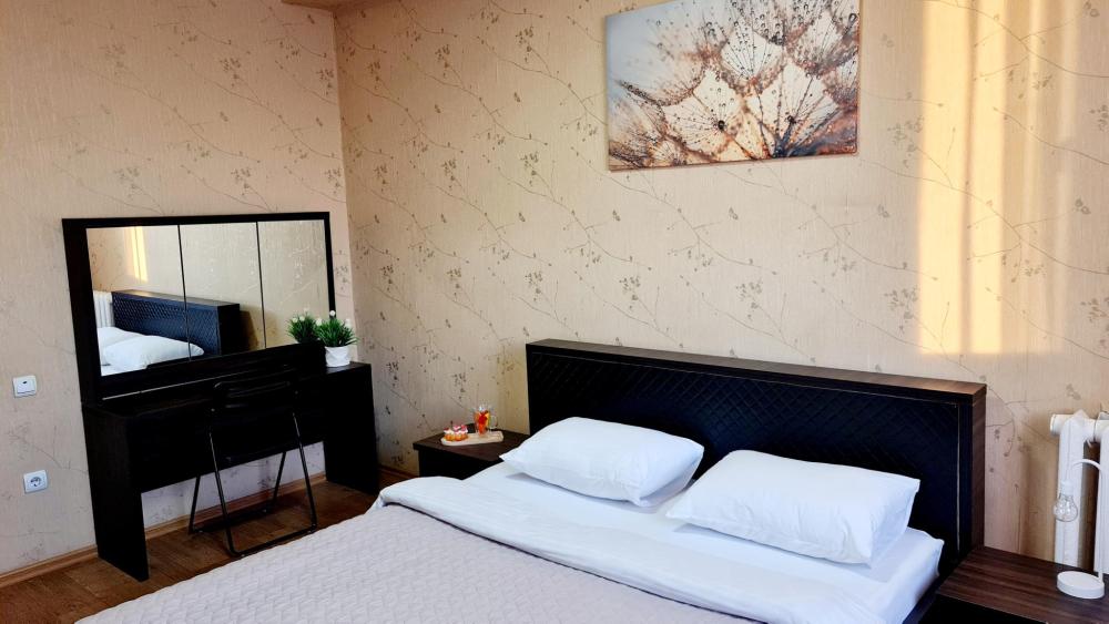 Двухкомнатная квартира с хорошим ремонтом в новом доме. В квартире предусмотрены две двуспальные кровати и диван. Курение, проведение мероприятий, проживание с животными в квартире запрещено. Квартира оборудована всем необходимым: кухонный гарнитур, полный набор посуды и постельного белья, телевизор, dvd-проигрыватель, холодильник, электрочайник, СВЧ, Wi-Fi. Застеклённый балкон. В квартире не бывает проблем с горячей водой, так как имеется водонагреватель.
