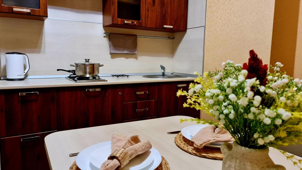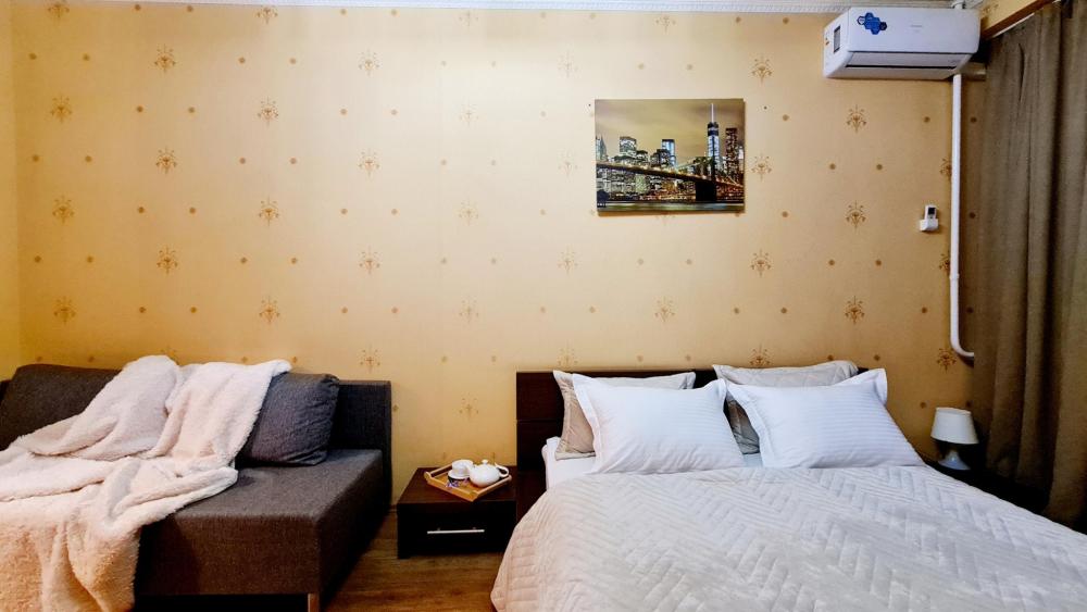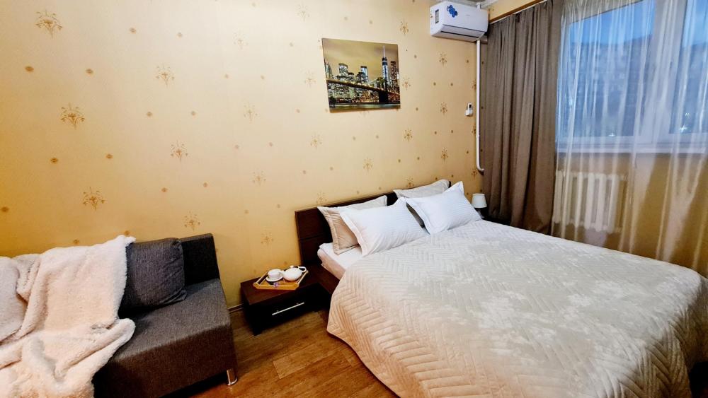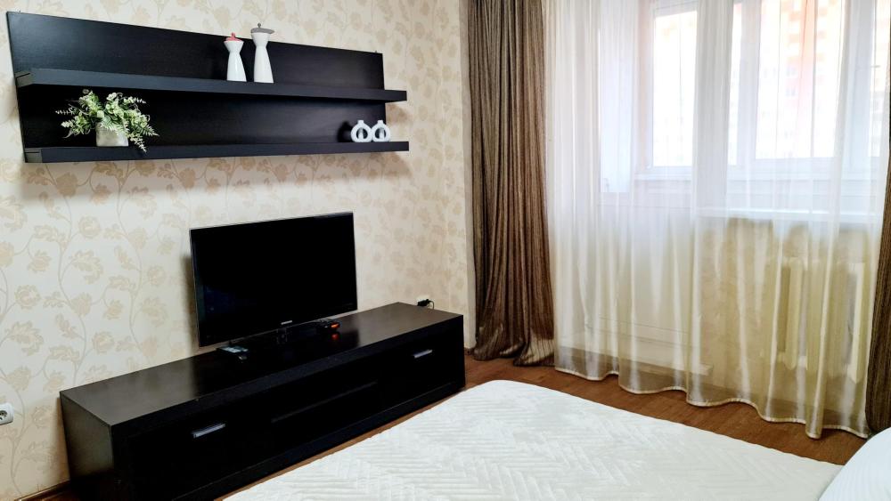 Однокомнатная квартира с хорошим ремонтом в новом доме. В квартире предусмотрена двуспальная кровать и диван. Курение, проведение мероприятий, проживание с животными в квартире запрещено. Квартира оборудована всем необходимым: кухонный гарнитур, полный набор посуды и постельного белья, телевизор, dvd-проигрыватель, холодильник, СВЧ, Wi-Fi, интернет-телевидение. В квартире не бывает проблем с горячей водой, так как имеется водонагреватель.