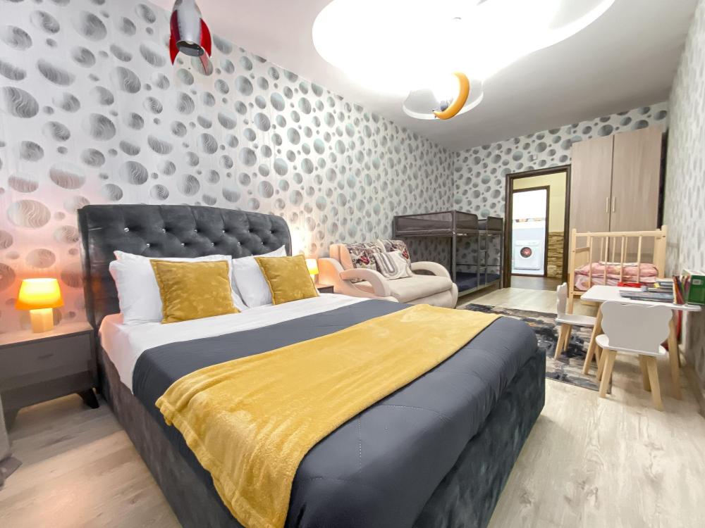 Двухуровневая 4-комнатная квартира для большой компании. Мы работаем круглосуточно и всегда быстро отвечаем на заявки. Бесконтактное заселение. Предоставляем отчётные документы. В квартире с комфортом смогут разместиться до 16 гостей. Мы продумали Ваш комфорт до мелочей: - Размещение гостей 2+2+2+2+2+2+1+1+1+1+1: четыре двуспальные кровати, 2 раскладных дивана, две двухъярусные кровати, - Телевизор SMARТ TV, интернет WI-FI;. - Кондиционер;. - Просторная лоджия.. На кухне: - Газовая плита, духовой шкаф, СВЧ, вытяжка, чайник;. - посуда, бокалы и много полезных мелочей для приготовления и приёма пищи; - кофе и чай; - обеденный стол и стулья. В ванной: - ванна, косметические наборы для тела, фен, стиральная машина и средство для стирки; - фен, утюг, гладильная доска, сушилка. Рады предложить дополнительные услуги: - зубные наборы, тапочки, халаты; - полный пакет отчетных документов (входит в стоимость); - проживание с домашними животными (по согласованию, возможна доплата); - трансфер; - аренда автомобилей О районе: -Недалеко Парк "Юность", сквер "Северный венец"; - Рядом пекарня "Хлебная Слобода", "Пятерочка", "Озон"; - 2 минуты до бассеина "Северная волна"; - 25 минут на автомобиле до ж/д и автовокзала; - Для туристов без авто в пешей доступности остановки общественного транспорта. Без труда можно добраться в любую точку города. ------------------------------------------------ Наша цель - превзойти Ваши ожидания!