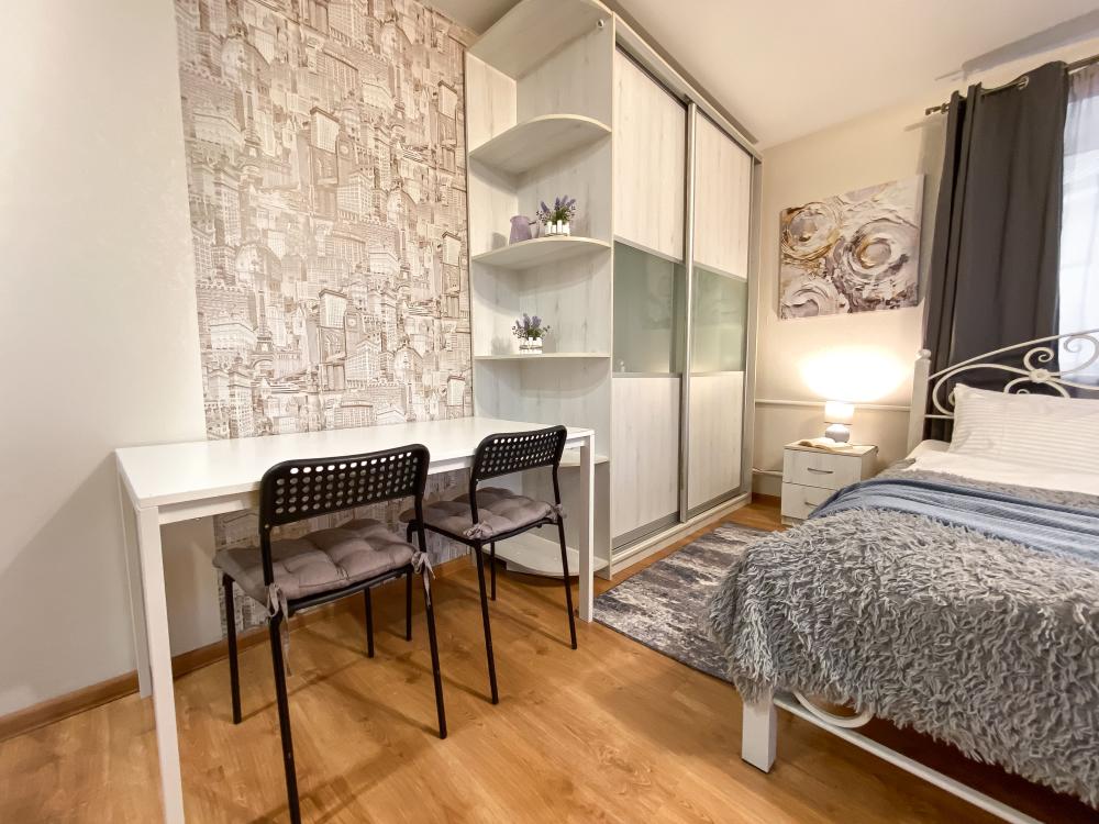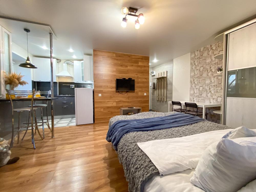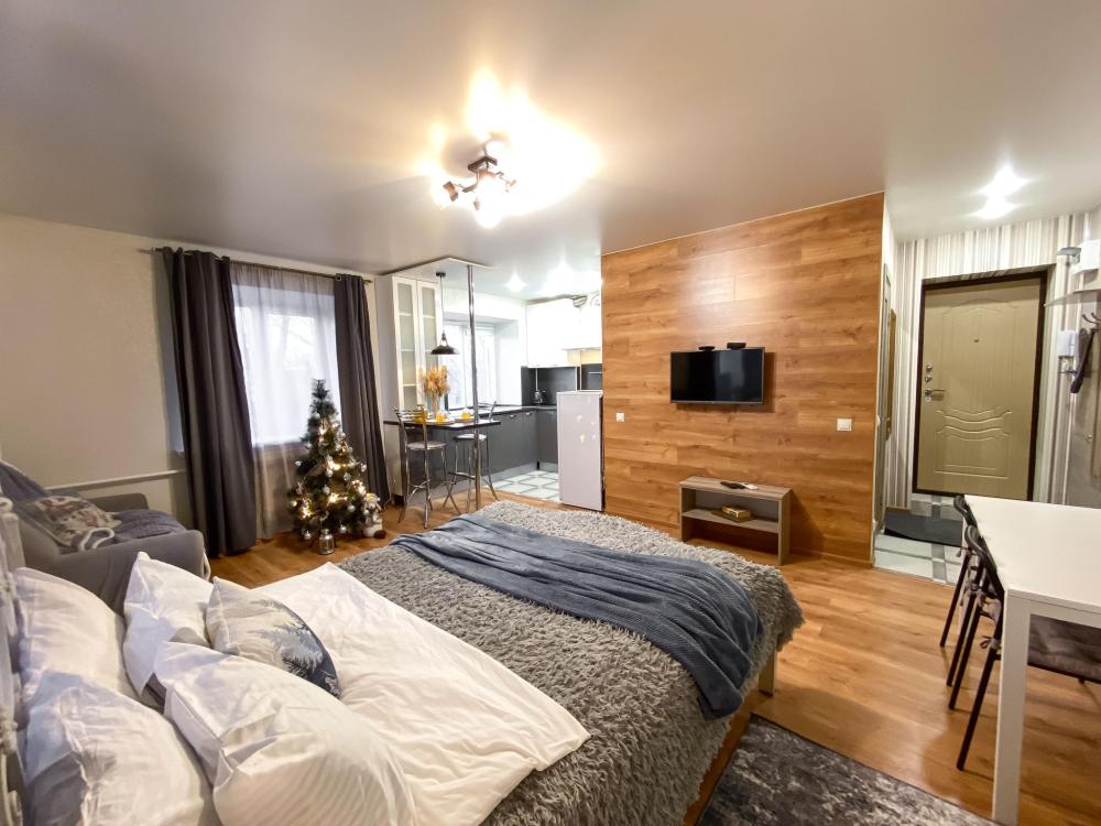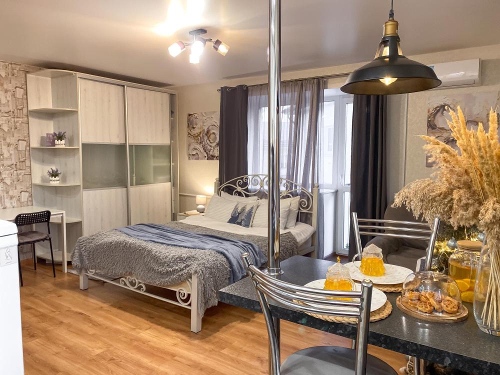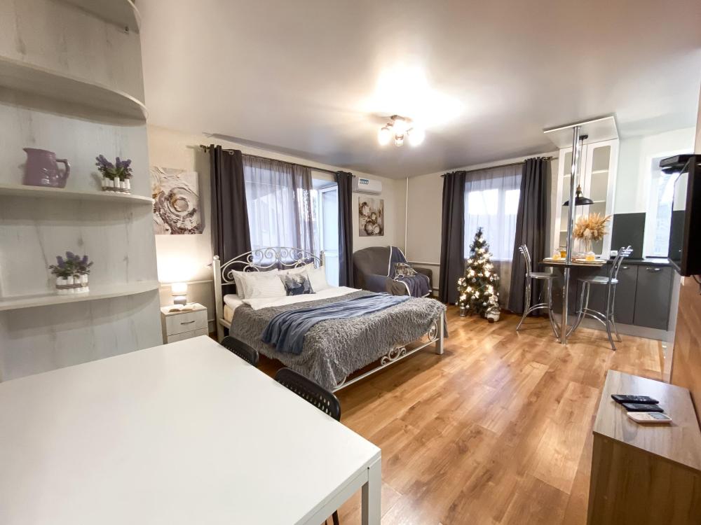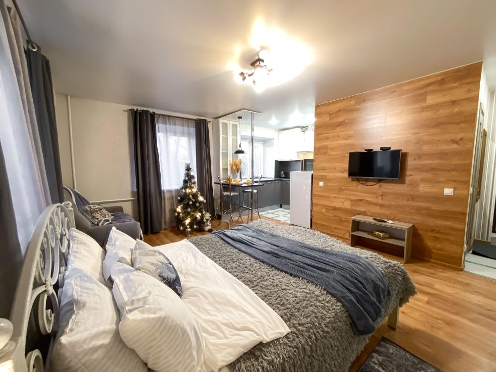 В апартаментах: Двуспальная кровать, раскладной диван для 1 гостя. Зона кухни, набор посуды и столовых принадлежностей, чай, кофе. Предоставляется постельное бельё и махровые полотенца. В ванной комнате: банные принадлежности для принятия душа, зубные наборы. Кабельное ТВ, интернет.