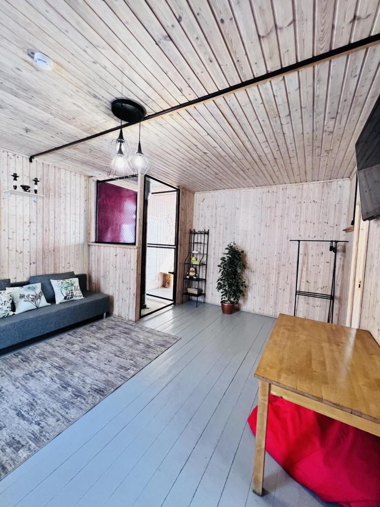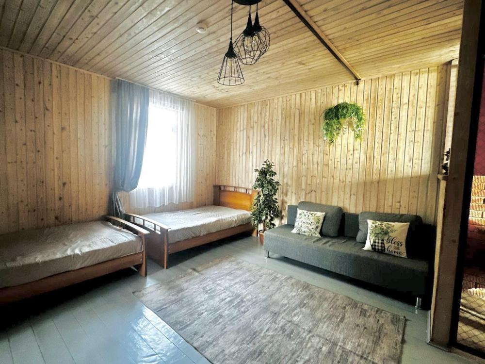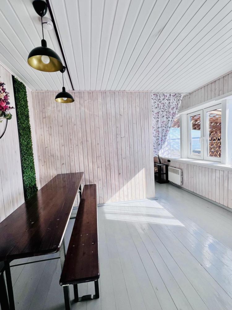 Дом №5 на турбазе Адмирал Просторная столовая с видом на реку, зона кухни, спальня и санузел с душем. В доме днём размещается до 7 человек, с ночёвкой — до 4. Спальня оснащена двуспальной и двухъярусной кроватями. Для комфортного отдыха есть кондиционер, холодильник, ТВ, СВЧ, чайник, электрическая плита, тостер и посуда. Постельное бельё и полотенца предоставляются. Во дворе — беседка с мангалом и зона кострища. Рядом на территории турбазы расположены настоящая баня на дровах и чан с травами.