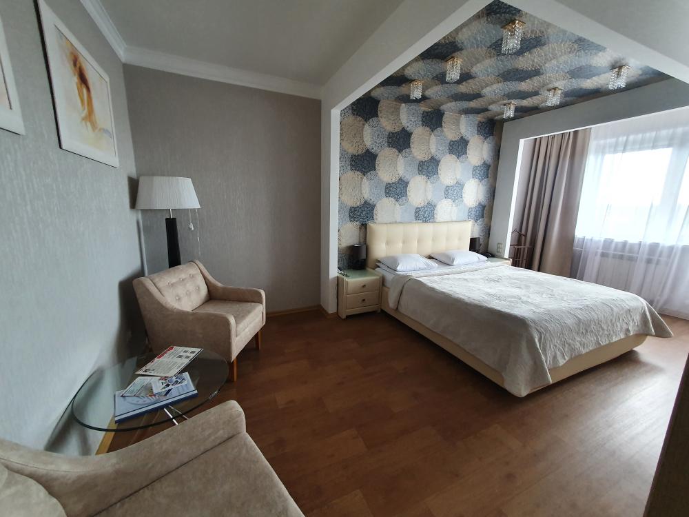 В номере: прихожая, оборудованная кухня с холодильником, санузел с душевой кабиной, комната отдыха. В комнате: полутороспальная кровать, телевизор с большим экраном, кондиционер. Дополнительно в номере: электрический чайник, гигиенические принадлежности, фен, бесплатный wi-fi.
