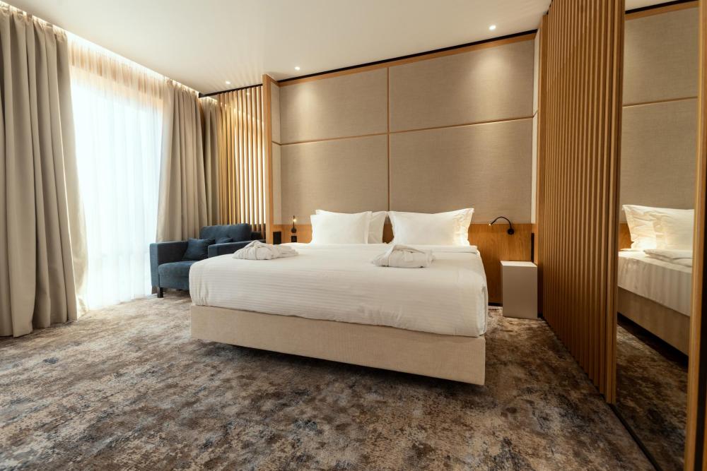 Светлые номера располагают к спокойному и комфортному отдыху. Все номера выполнены в едином стиле. В номерах: ванная комната с душевой кабиной, фен телефон телевизор кондиционер WiFi интернет минибар сейф просторная кровать