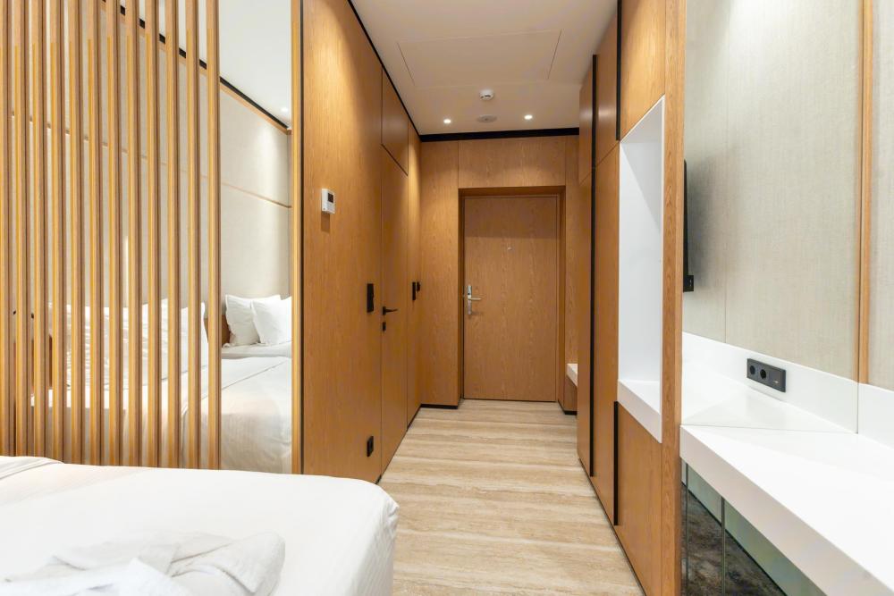 Прекрасные светлые номера располагают к спокойному и комфортному отдыху. Все номера выполнены в едином стиле. В номерах: ванная комната с душевой кабиной фен телефон телевизор кондиционер высокоскоростной WiFi интернет минибар сейф просторная кровать (160/200)