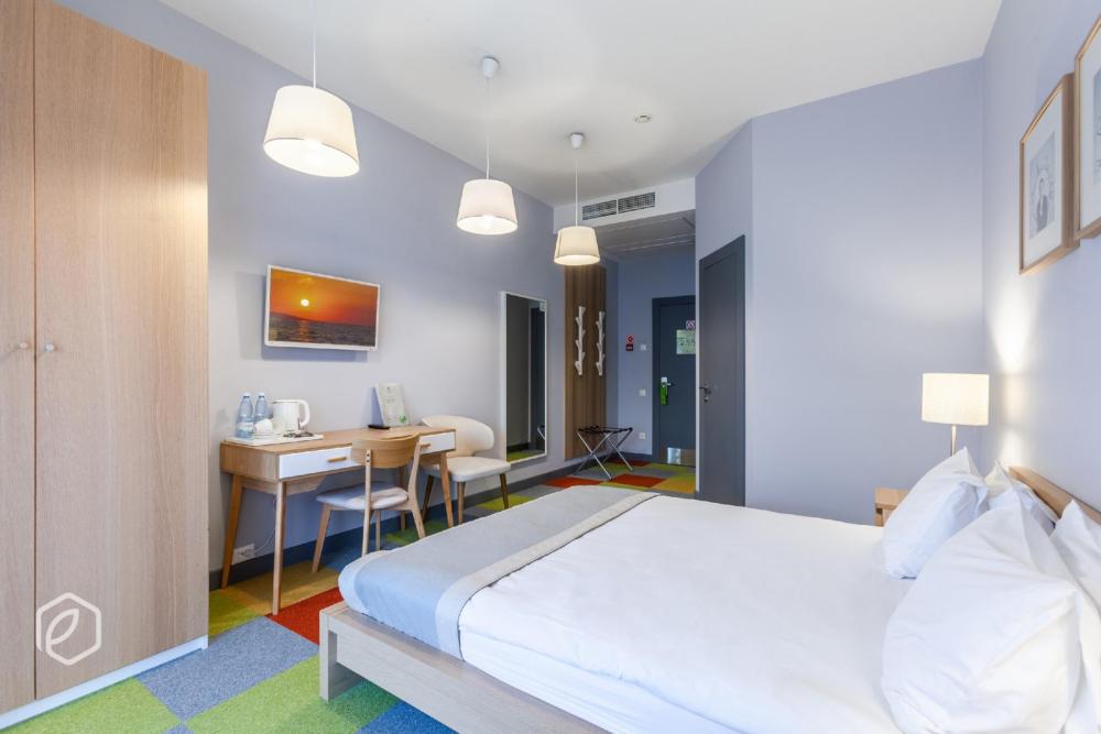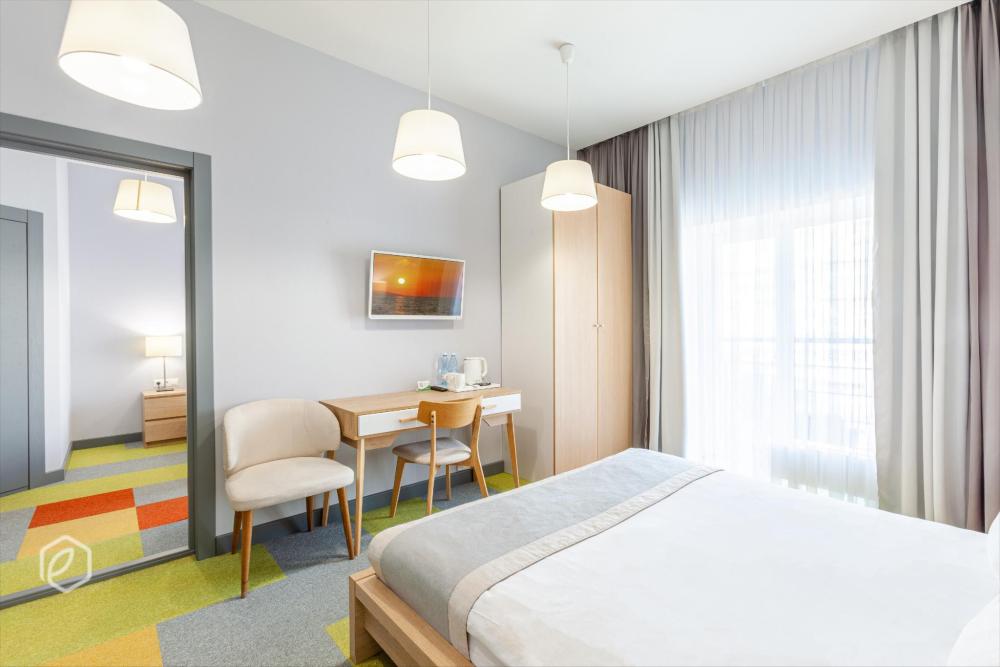 В номере данной категории для гостей Отеля доступны: сейф, мини-бар, кабельное телевидение, кондиционер, фен, чайные принадлежности, полотенца, махровый халат, одноразовые тапочки и предметы гигиены. Доступ к беспроводному интернету на всей территории Отеля, предоставляется гостям бесплатно/ Отличительной чертой этого типа номеров является увеличенная площадь номера и живописный вид на широчайшее устье реки Волги