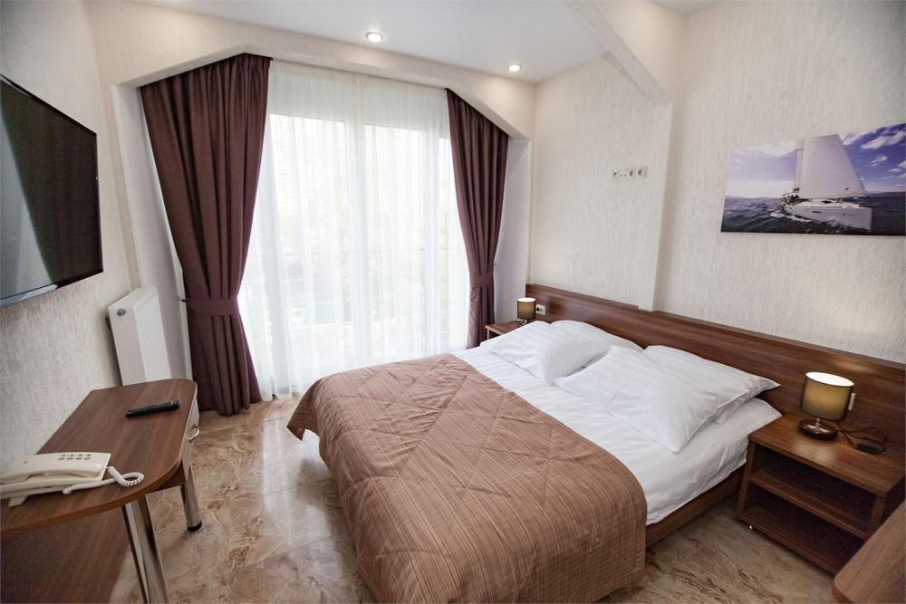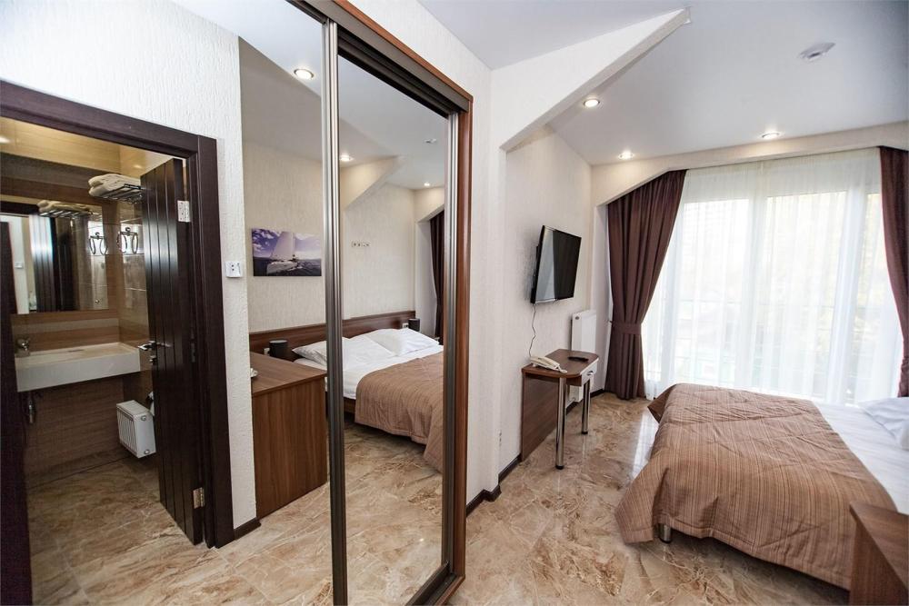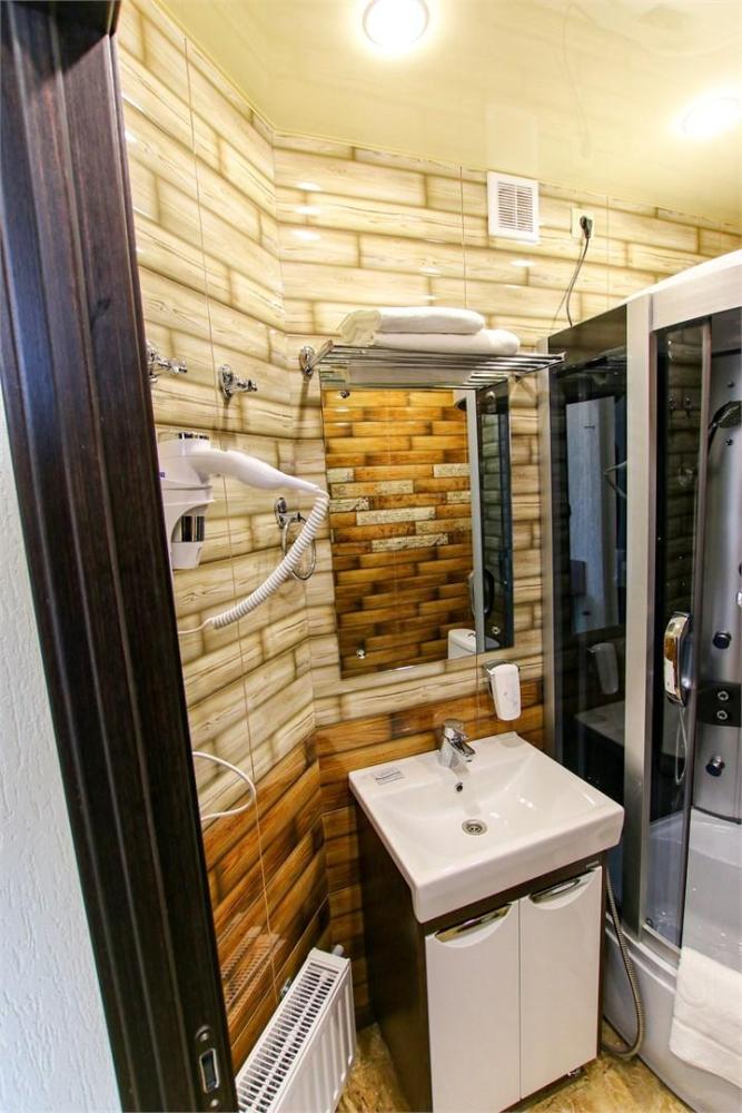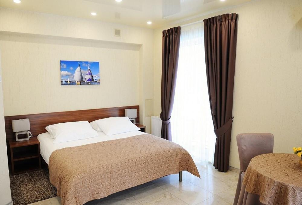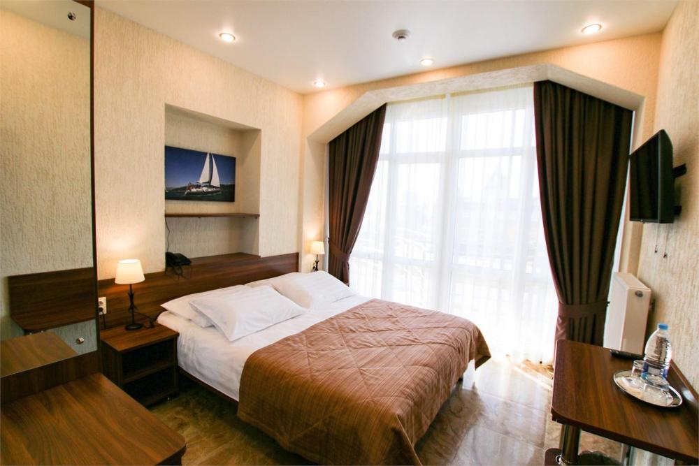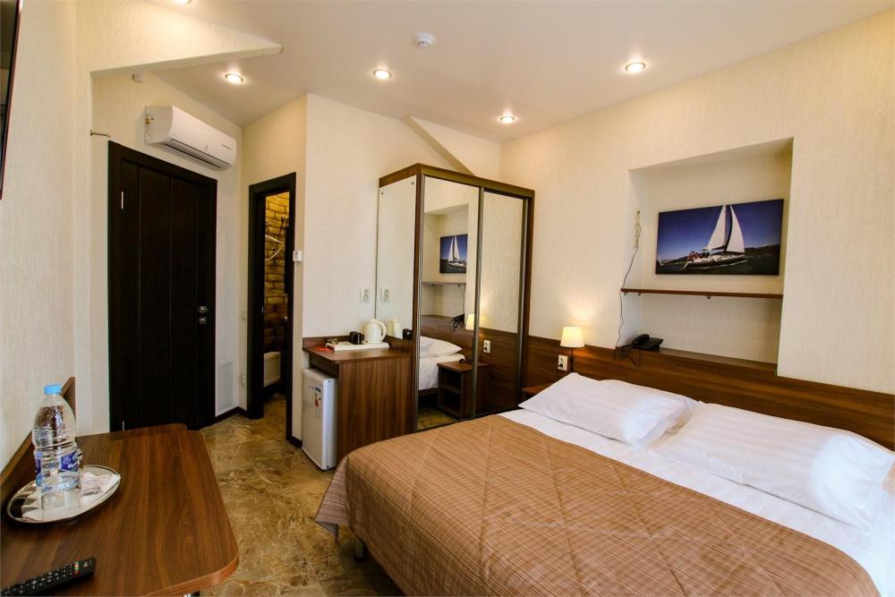 Небольшой уютный номер, площадью 14 кв. м.. В номере двуспальная кровать, кондиционер, беспроводной интернет, в ванной комнате душевая кабинка, халат, полотенца, тапочки, фен, также в номере есть телевизор, электрический чайник, чай, кофе, минеральная вода, мини-бар и сейф.